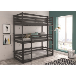 Třílůžková patrová postel s matracemi TEDRO 200x90 Grafit