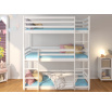 Patrová 3lůžková postel TEDRO je skvělý nápad na úsporu místa v malém dětském pokoji. Každé další patro se nachází nad tím předchozím. Nábytek má dvě stabilní schůdkové žebříky a ochranné zábradlí umístěné téměř na každé straně rámu, díky kterým máte jistotu, že vaše dítě je během spánku zcela v bezpečí. Matrace nejsou součástí postele.