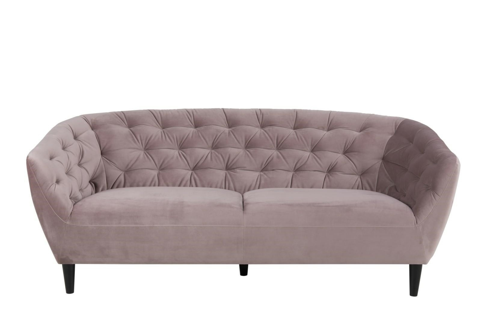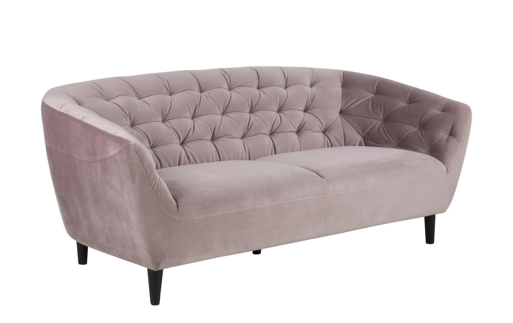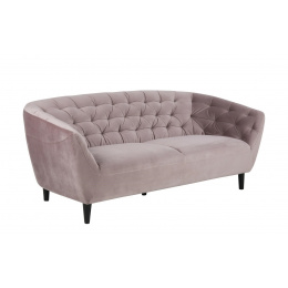 Trojmístná pohovka Ria se hodí jak do glamour interiéru, tak do skandinávského. Pohovka byla potažena velmi měkkou a na dotek příjemnou sametovou látkou. Na sedáku i opěradle byly umístěny elegantní prošívání zakončené knoflíky. Tkanina, kterou použili k potažení pohovky, je tkanina VIC Dusty rose 18. Sofa má čtyři velmi odolné nohy z kaučukového dřeva. Nohy byly dodatečně zabezpečeny tím, že byly natřeny na černo. Hmotnost: 39,8 kg. Rozměry kartonu: 65cm x 193cm x 84cm Výška sedáku: 46 cm Šířka sedáku: 152 cm Hloubka sedáku: 55 cm Výška područek: 42 cm