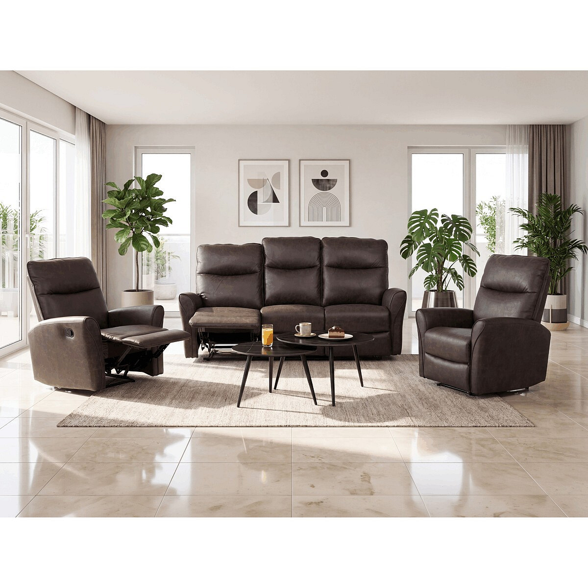 Moderní sedací souprava 3+1+1 v hnědém odstínu s efektem vintage přináší do obývacího pokoje nadčasovou eleganci a maximální komfort. Pohovka je rozkládací a jednotlivá křesla disponují manuálním polohováním, díky kterému si snadno nastavíte ideální pozici pro relaxaci. Kvalitní látkové čalounění s vintage vzhledem působí luxusně a zároveň útulně. Stabilní kovové prvky a pohodlné polstrování zaručují dlouhou životnost i vysoký komfort sezení. Tento set je skvělou volbou pro moderní interiéry a je produktem značky Autronic.