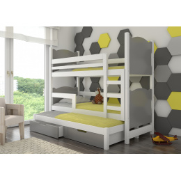 Třílůžková patrová postel s matracemi LETICIA Bílá+Šedá