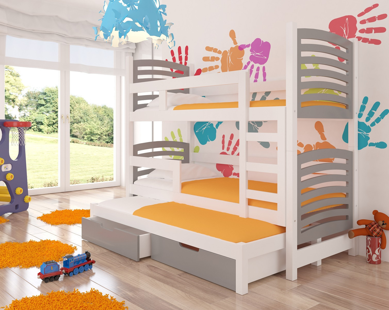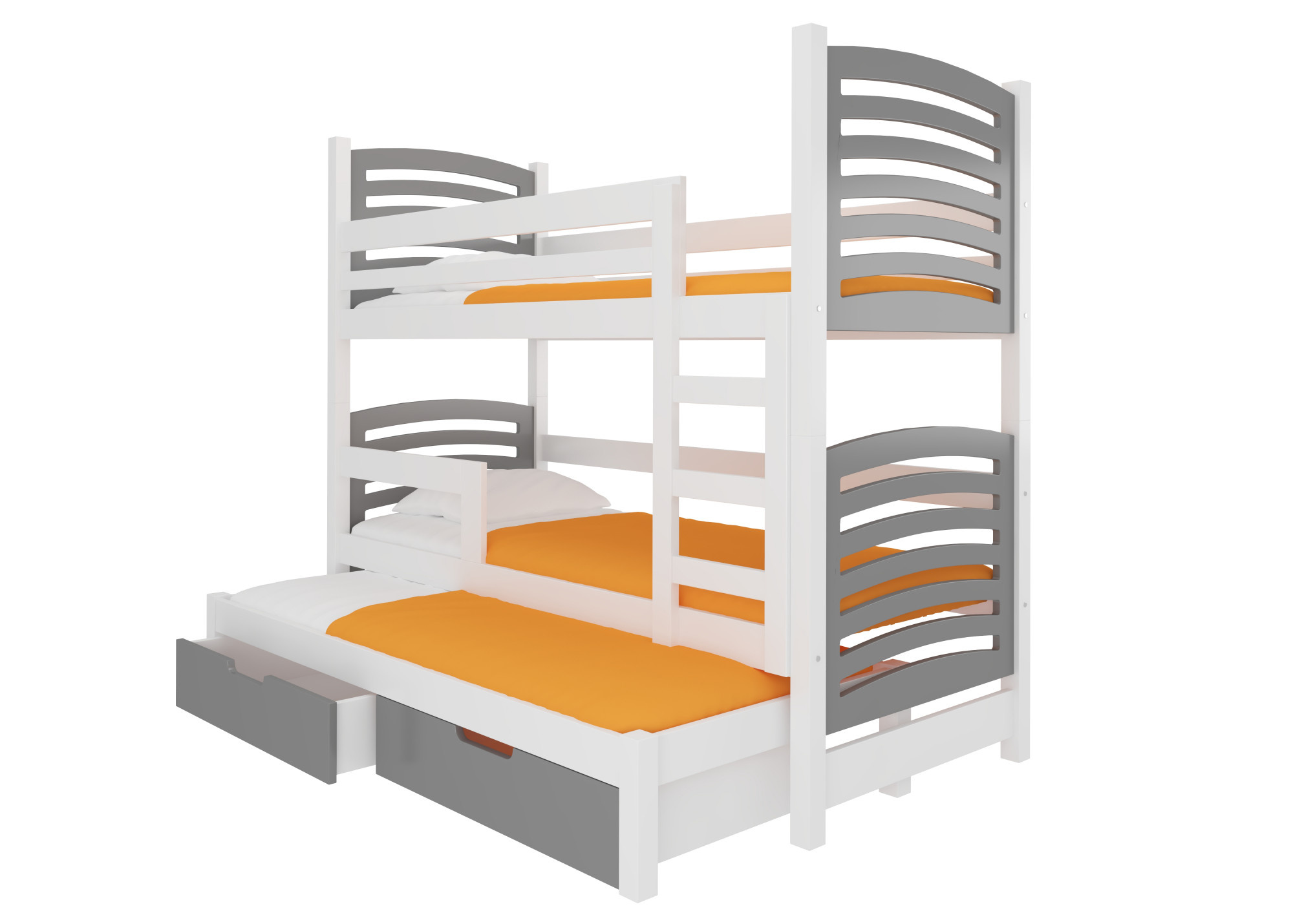 Třílůžková patrová postel s matracemi SORIA White+Gray