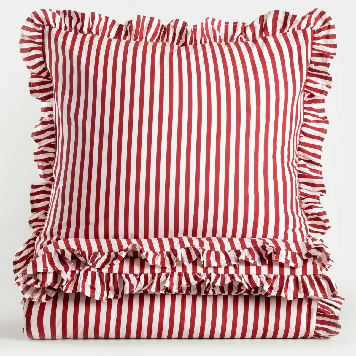 Pruhované bavlněné povlečení s volánkem vám pomůže vytvořit jedinečné zimní uspořádání ve vaší ložnici. Jedná se o stylovou sadu ve slavnostních barvách, která doplní aranžmá a vytvoří kouzelnou atmosféru ve vašem interiéru. Povlečení je odolné, elegantní a velmi snadno se čistí. Oblečte svůj domov na Vánoce a užijte si tento zvláštní čas se svými blízkými.