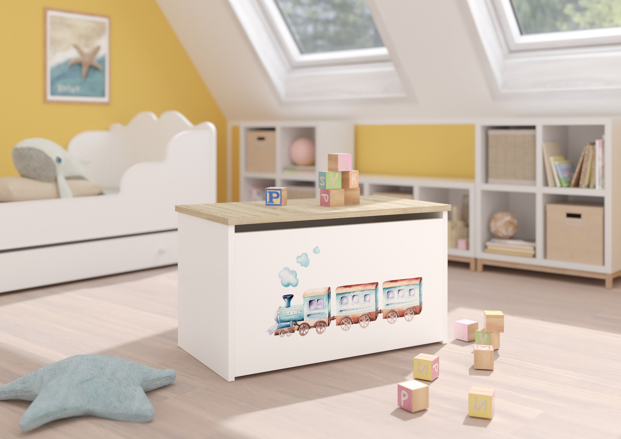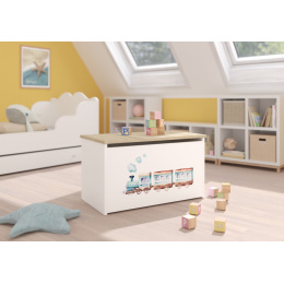 Truhla na hračky DARIA je ideální skrýš pro ukládání různých pokladů vašeho dítěte. Díky snadno ovladatelnému zvedáku dítě bez obtíží otevře a zavře kufr. Přední část truhly je v bílé barvě a může být ozdobena barevnými potisky.
