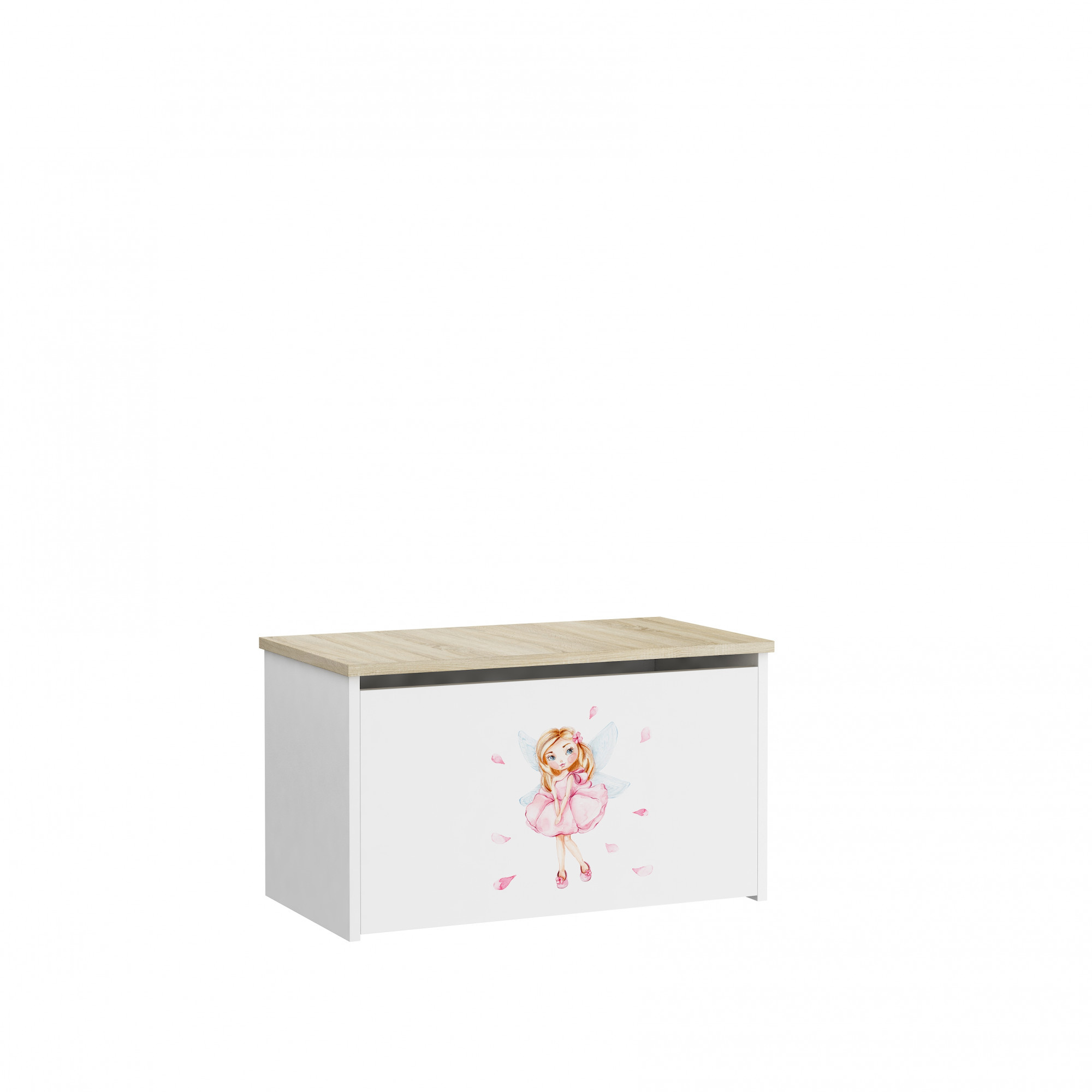 Truhla na hračky DARIA je ideální skrýš pro ukládání různých pokladů vašeho dítěte. Díky snadno ovladatelnému zvedáku dítě bez obtíží otevře a zavře kufr. Přední část truhly je v bílé barvě a může být ozdobena barevnými potisky.