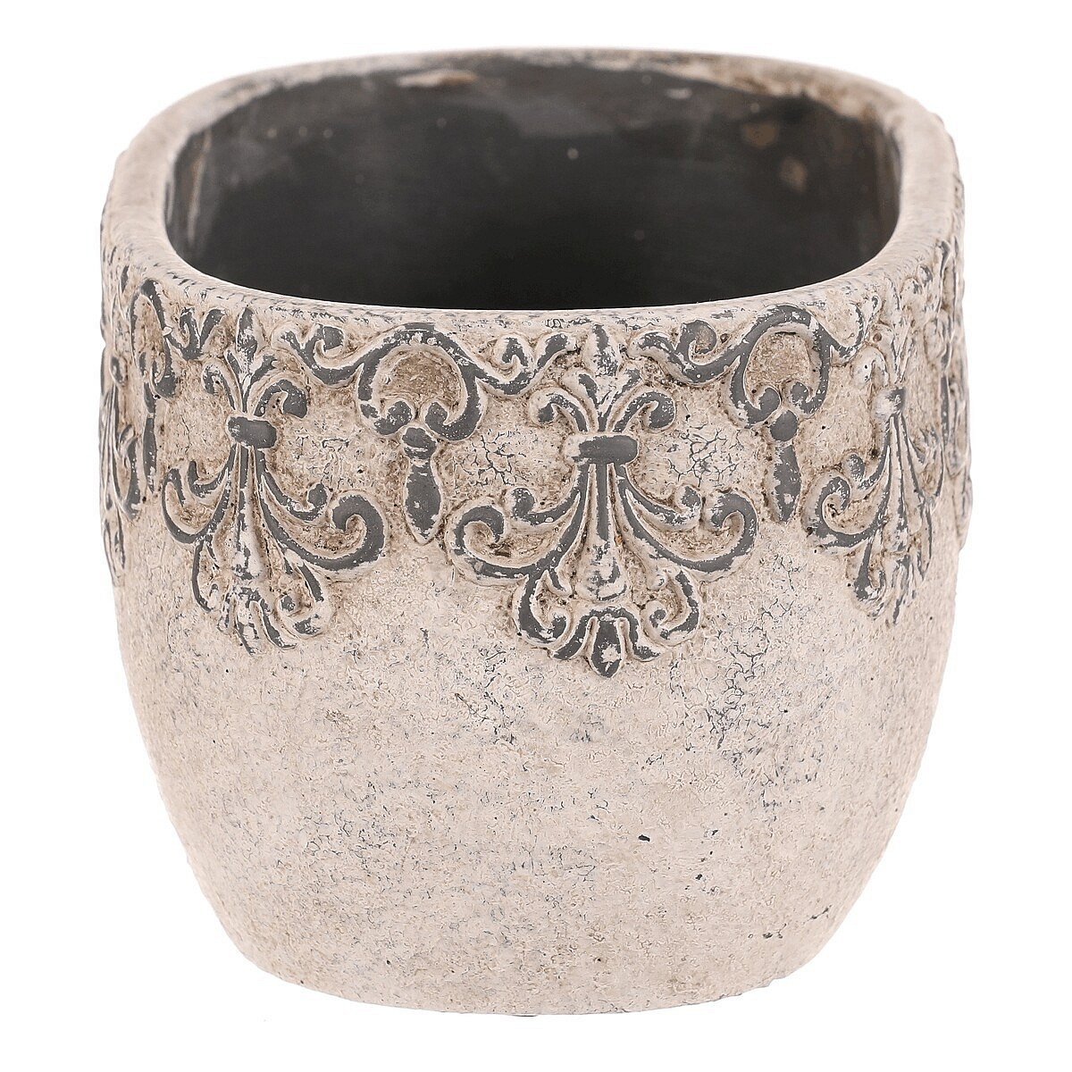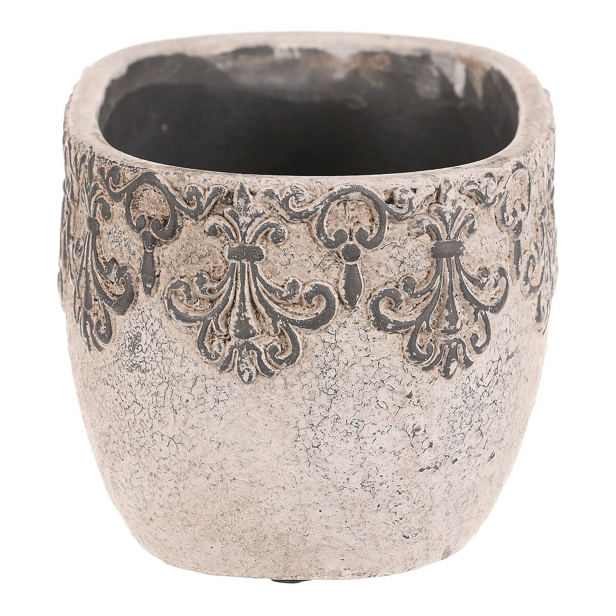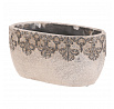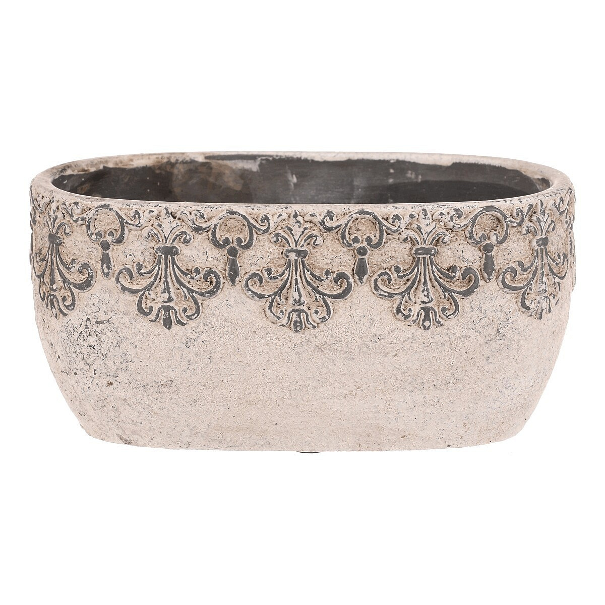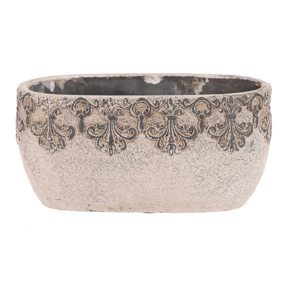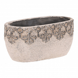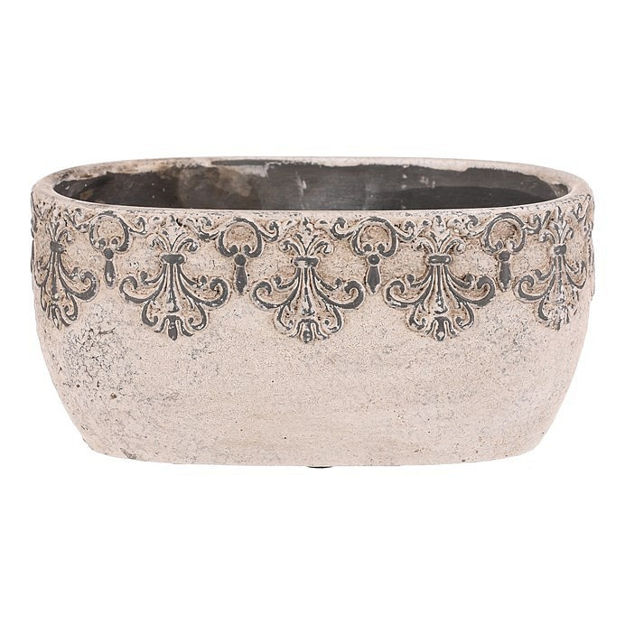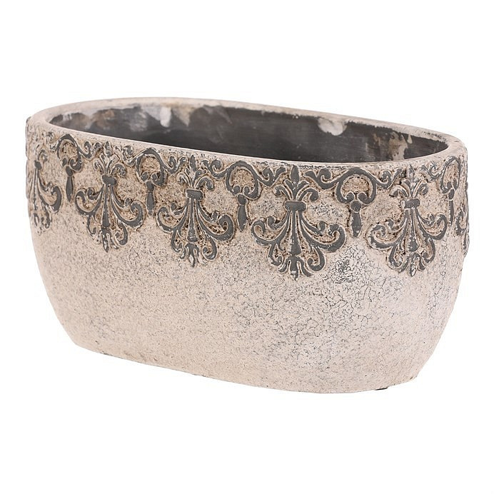 Truhlík oválný - beton, ozdobné ornamenty, šedý