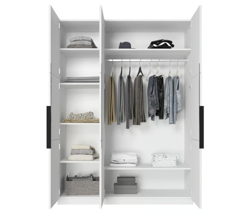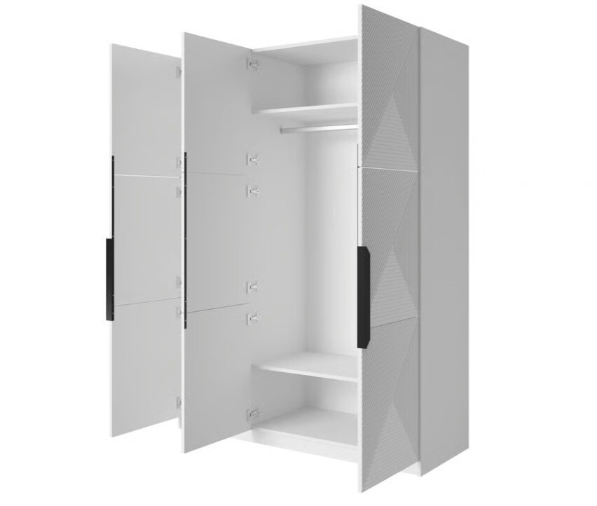 Objevte dokonalou kombinaci elegance a funkčnosti s naší šatní skříní Asha 150. Tato skříň je navržena tak, aby splnila všechny vaše potřeby pro ukládání oblečení a zároveň se stala stylovým doplňkem vašeho interiéru. S bílým matným povrchem a černými úchyty přináší moderní a sofistikovaný vzhled, který se hodí do každého domova.