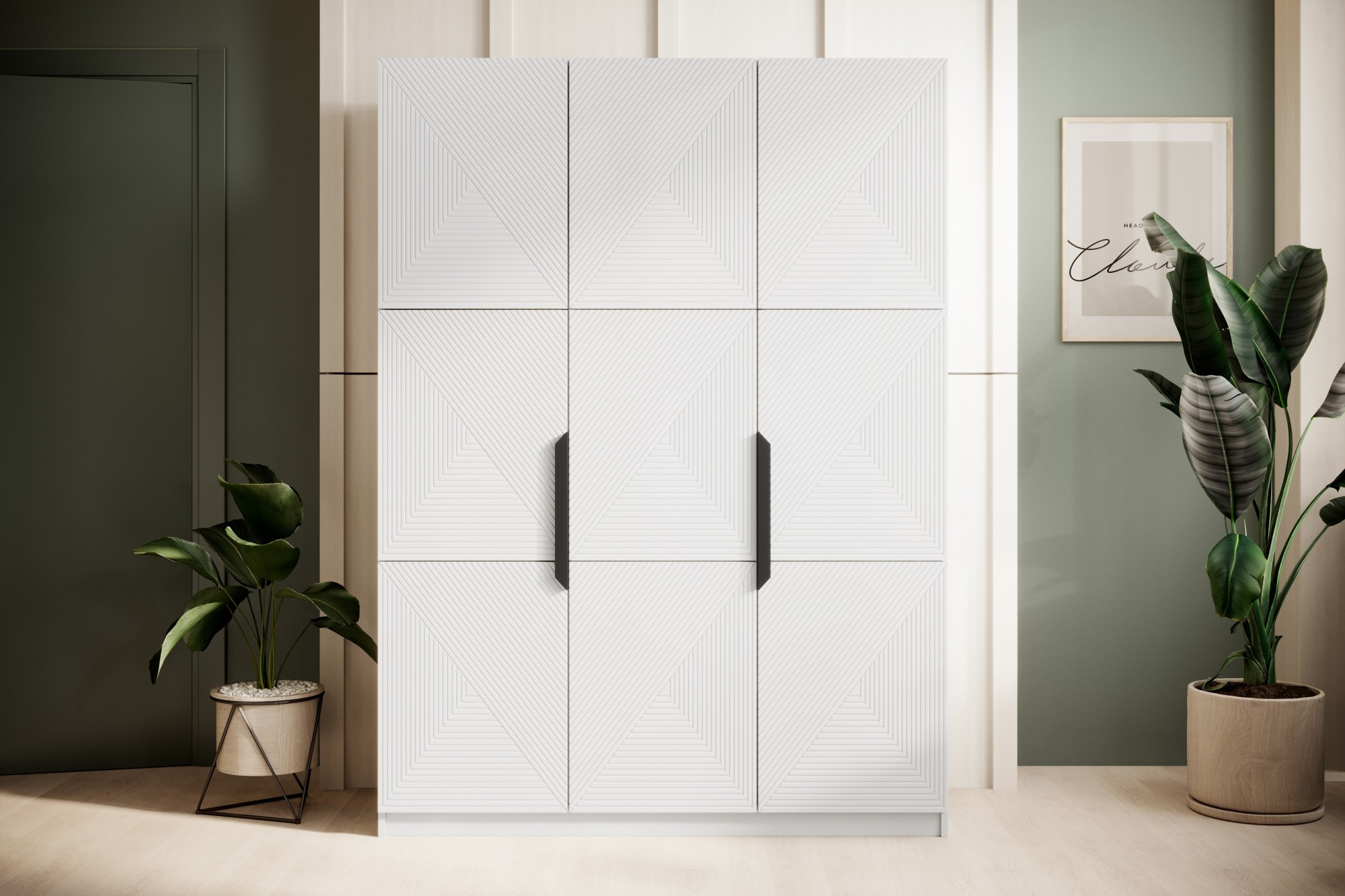 Tato 3-dveřová skříň je vybavena klasickým otvíráním, které umožňuje snadný přístup k vašemu oblečení a dalším uloženým věcem. Klasické otvírání je nejen praktické, ale také přidává tradiční nádech do moderního designu skříně.