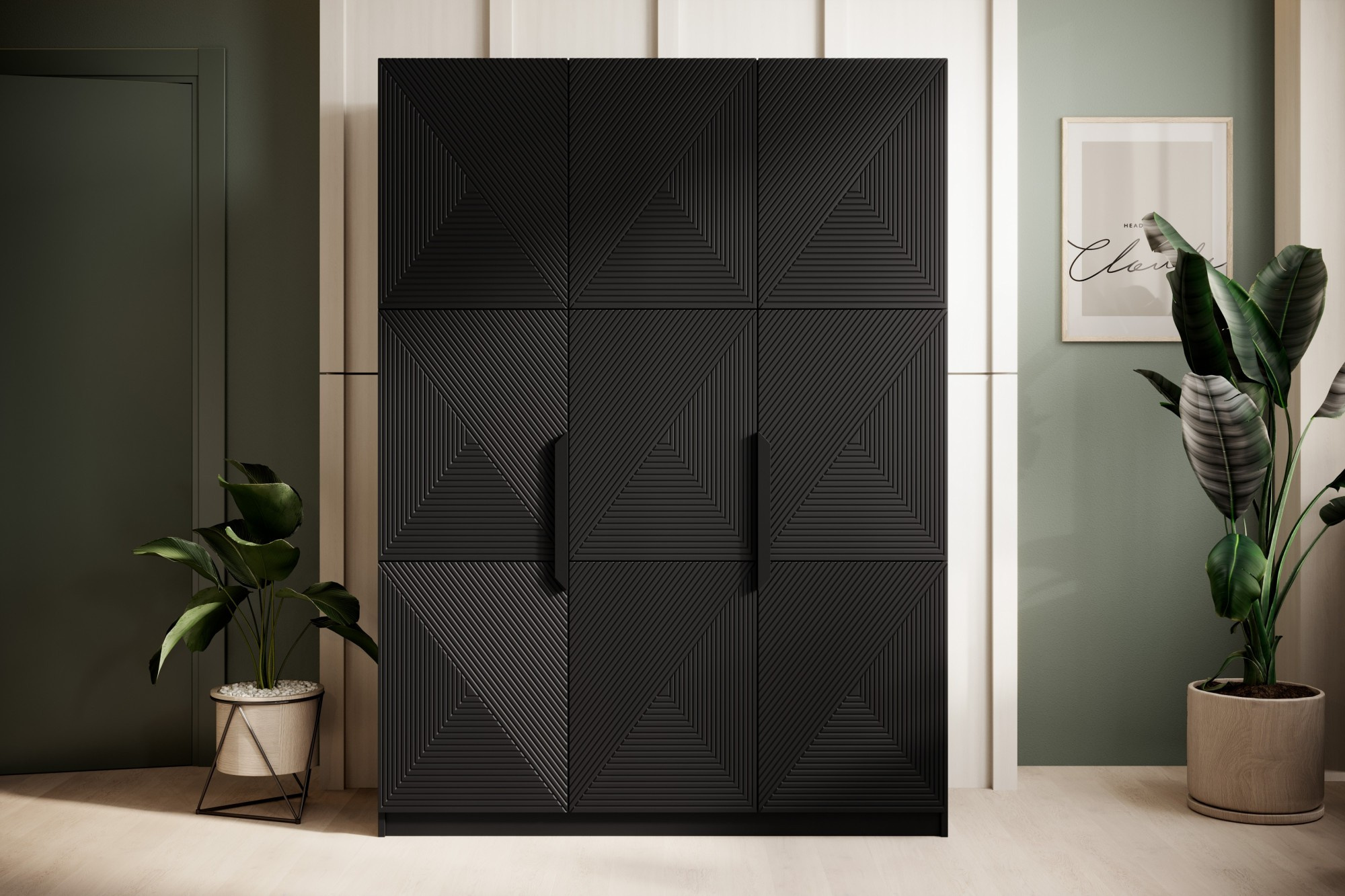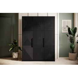 Třídveřová skříň Asha s kovovými úchyty 150 cm - černý mat / černé úchyty, Šířka: 150, Výška: 207, Hloubka: 55, Výška nožek: , Hloubka desky: , Montáž: