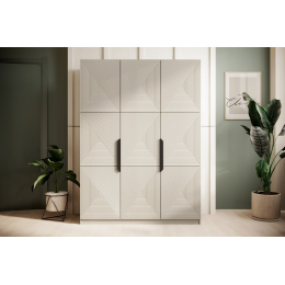 Třídveřová skříň Asha s kovovými úchyty 150 cm - kašmír / černé úchyty, Šířka: 150, Výška: 207, Hloubka: 55, Výška nožek: , Hloubka desky: , Montáž: