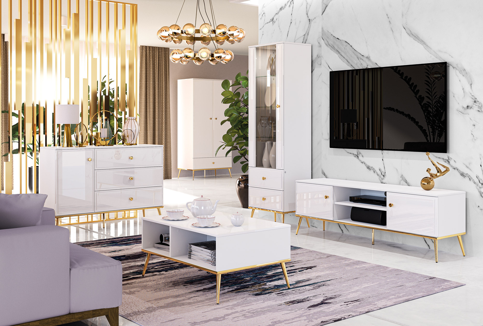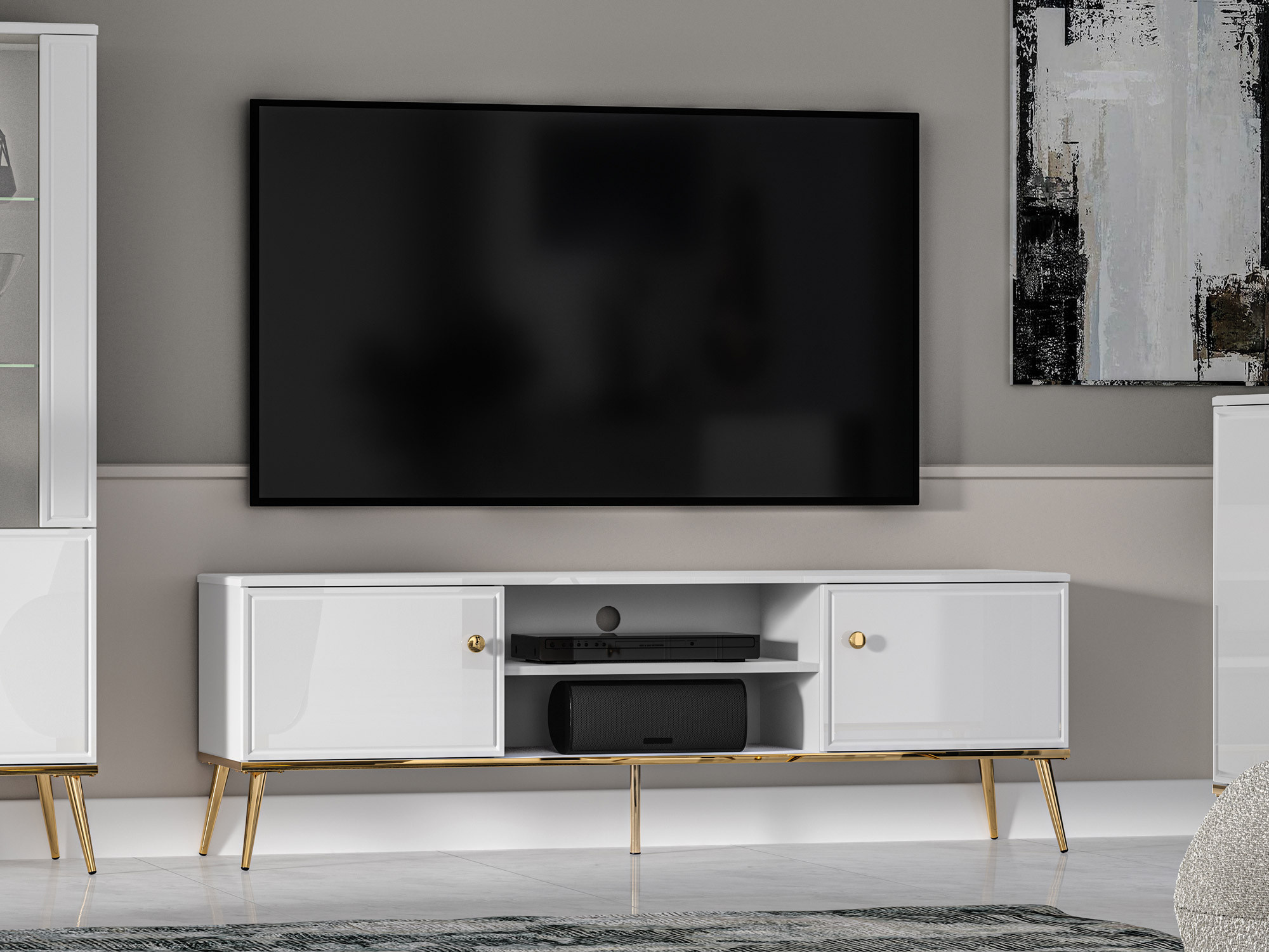 Tv komoda GOLDIN 06, Alpská bílá/Bílý Lesk