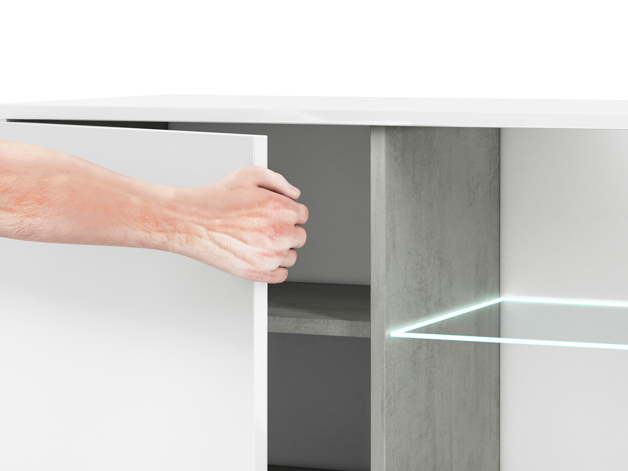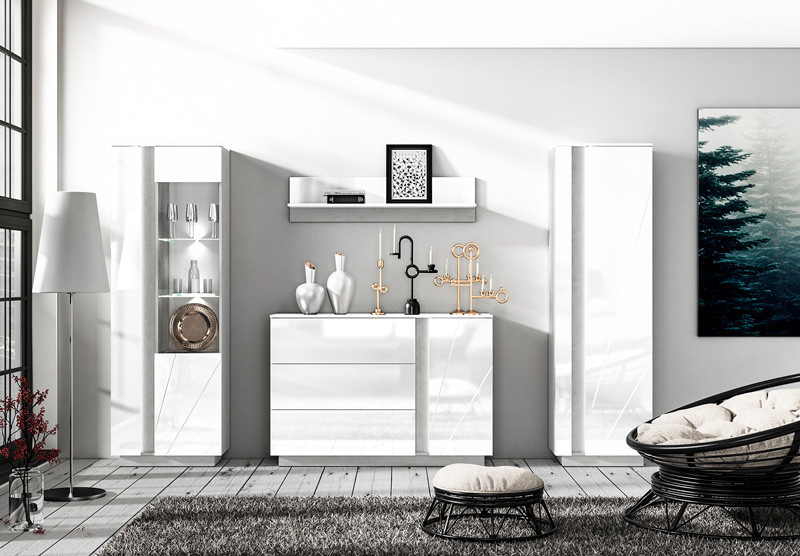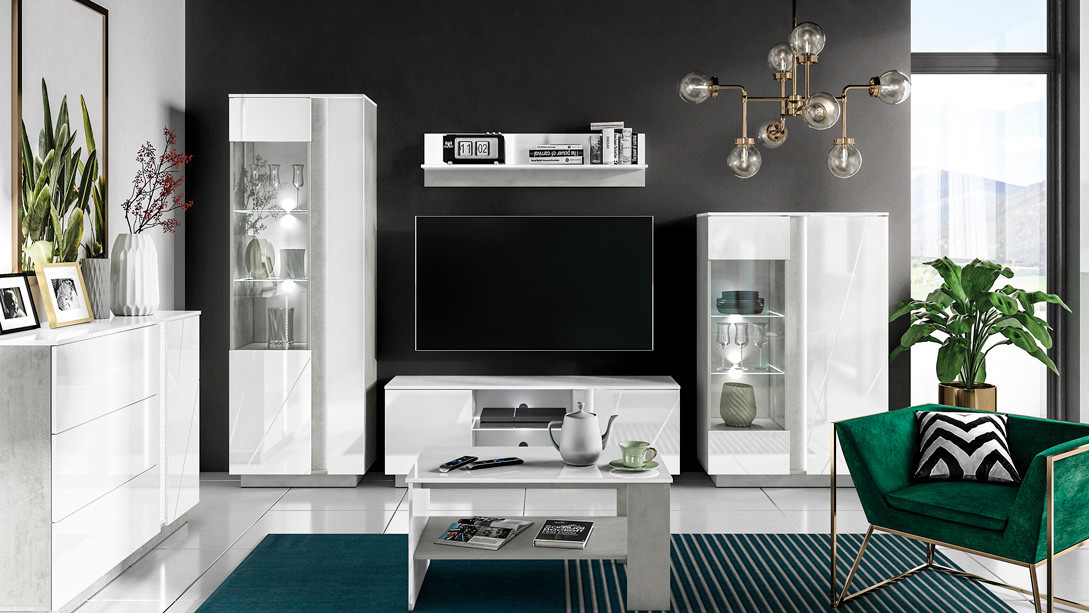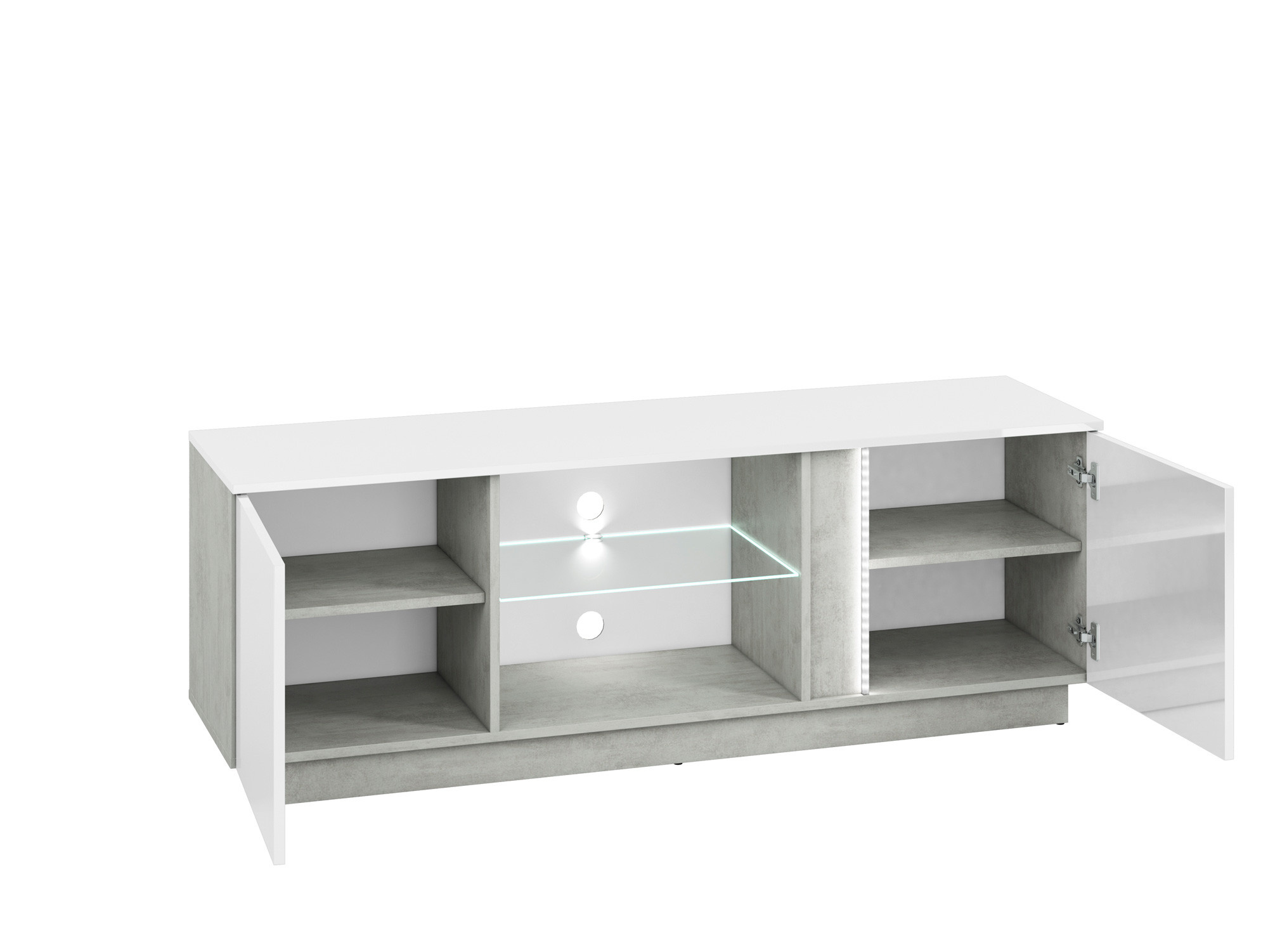 Tv komoda LUMENS 09, Beton/Bílý lesk