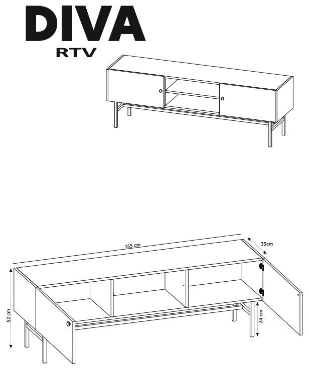Představujeme Vám TV stolek DIVA RTV, který je dokonalým spojením funkčnosti a designu. Tento výjimečný kousek nábytku se stane nepostradatelnou součástí Vašeho obývacího pokoje. Jeho elegantní černá barva dodá interiéru sofistikovaný vzhled a vytvoří útulnou atmosféru.