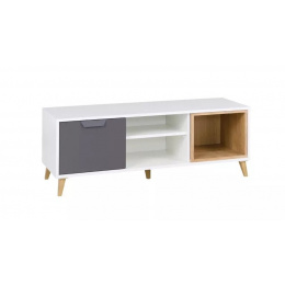 Tv komoda POKER R10, Bílá/Grafit/Dub lefkas/Šedá