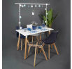 Funkční dekorativní věšák, montovaný na desku stolu, je doplněk, který lze využít mnoha způsoby. Vyrobený z kovu, v klasické bílé barvě, jistě potěší milovníky nápaditých dekorativních prvků v interiérovém designu. Lze na něj zavěsit stylové dekorace nebo využít v krejčovských dílnách. Tyč na dekoraci bude užitečná při zdobení stolu na narozeniny, svátky nebo rozlučku se svobodou. Můžeme na něj zavěsit barevné světýlka nebo girlandy z květin. Tyč se rozšiřuje od 139 do 250 cm, díky čemuž ji můžeme přizpůsobit každému stolu. Rozměry balení: 21 x 18 x 139 cm