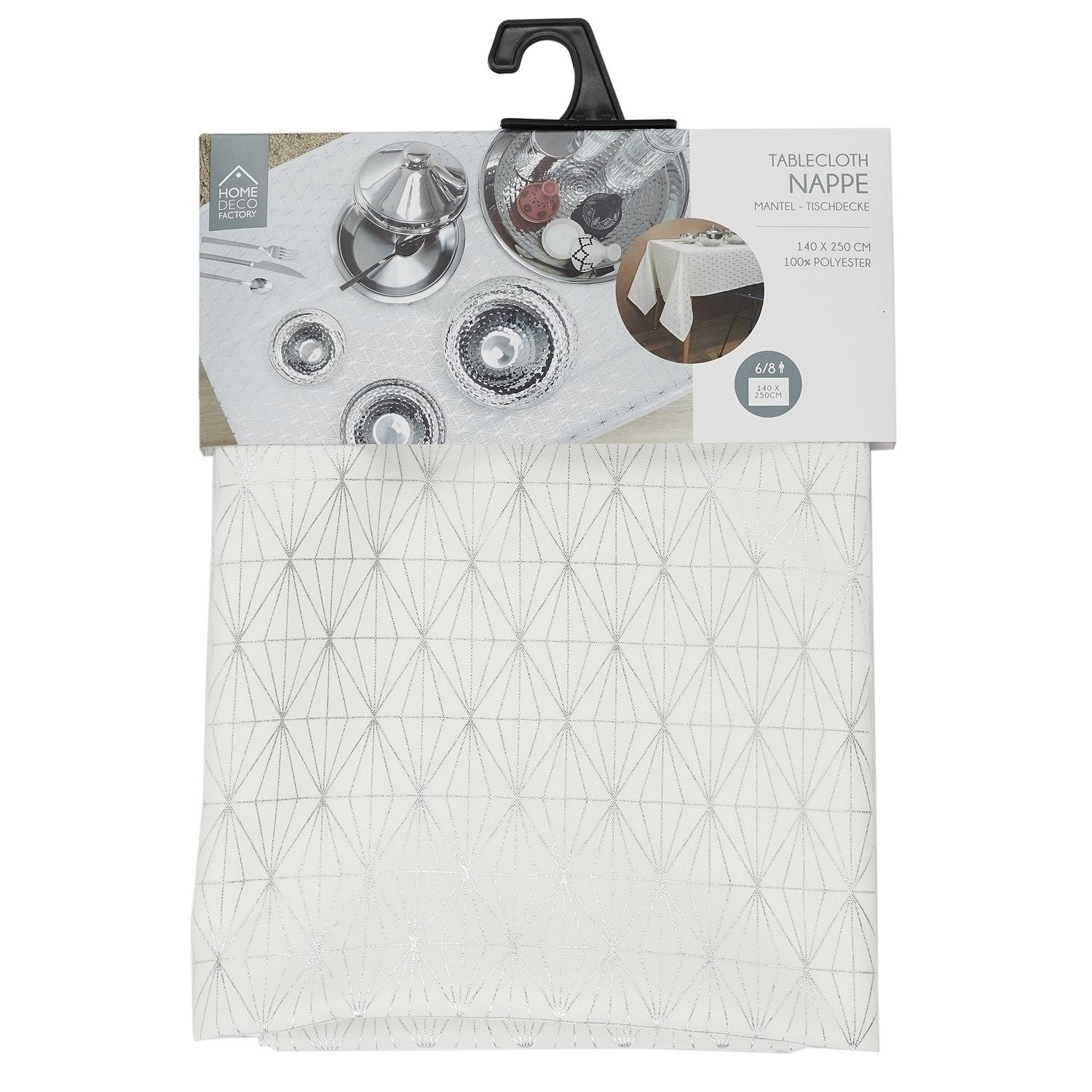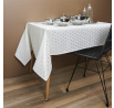 Obdélníkový ubrus ideální pro pokrytí svátečního stolu. Ubrus v bílém elegantním odstínu byl ozdoben jemnými, geometrickými vzory. Materiál: 100% polyester Rozměry 140x250 cm