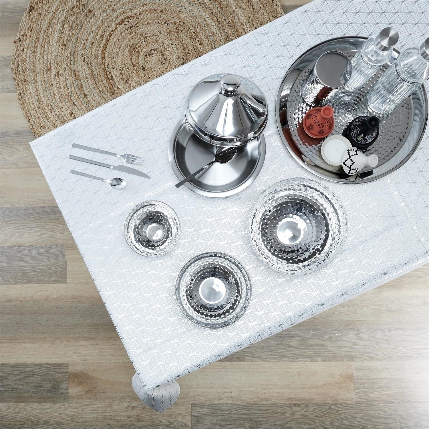 Ubrus Geometric Dore bílý/stříbrný 140x250 cm