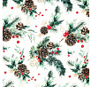 Vánoční ubrus s motivem jehličí, šišek a bobulí na čistě bílém podkladu přináší do interiéru svěží a elegantní sváteční atmosféru. Rozměr 130 × 160 cm je ideální pro větší stoly a rodinná setkání. Vyrobený ze 100 % polyesteru, snadno se udržuje a lze ho prát na 30 °C. Skvělá volba pro krásnou a praktickou výzdobu svátečního stolu.