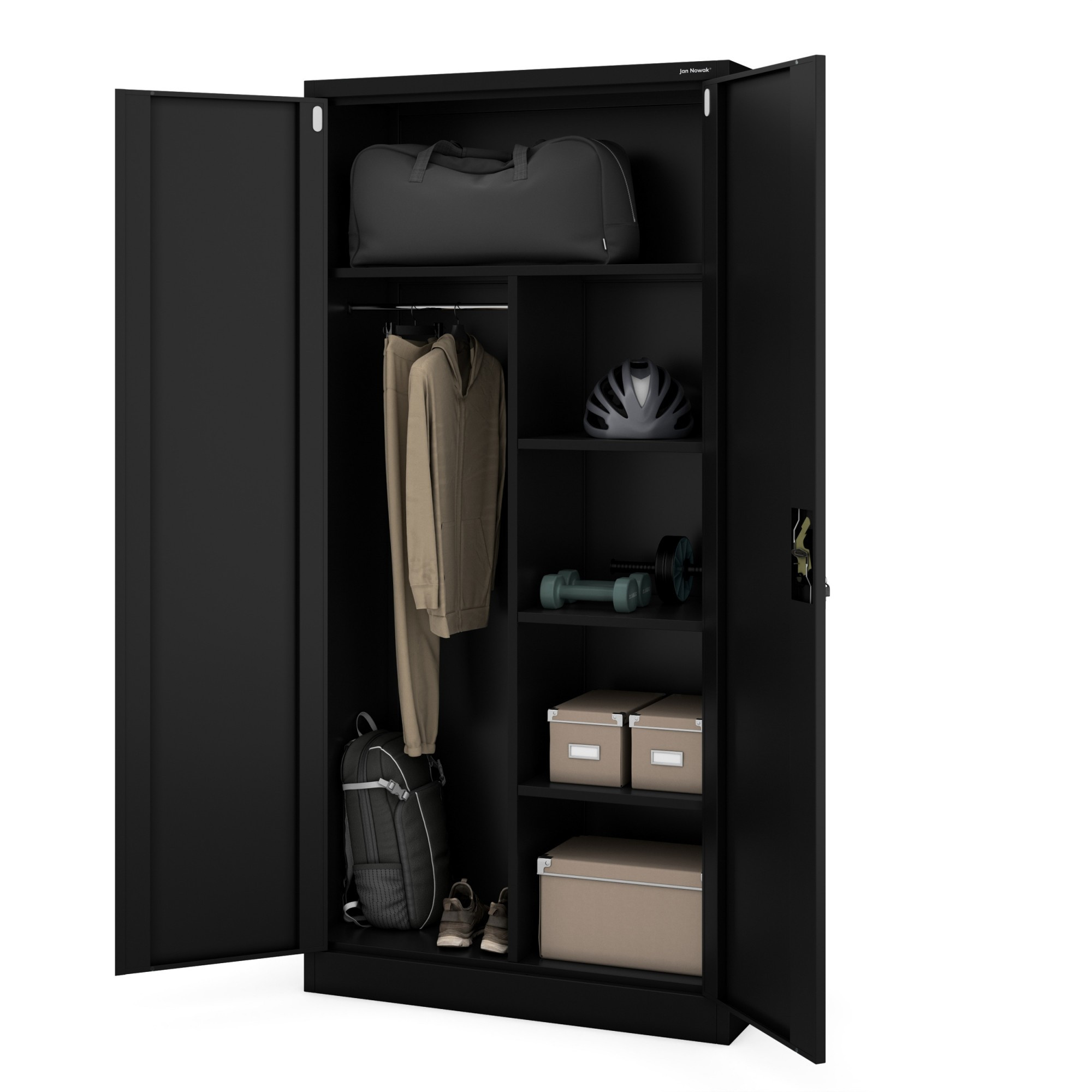Hledáte spolehlivé a elegantní řešení pro uskladnění nářadí, pracovních oděvů a dalších potřebných věcí? Představujeme vám úložnou skříň DAWID v nadčasové černé barvě, která se stane nepostradatelným pomocníkem ve vaší dílně, garáži, ale i v domácnosti.