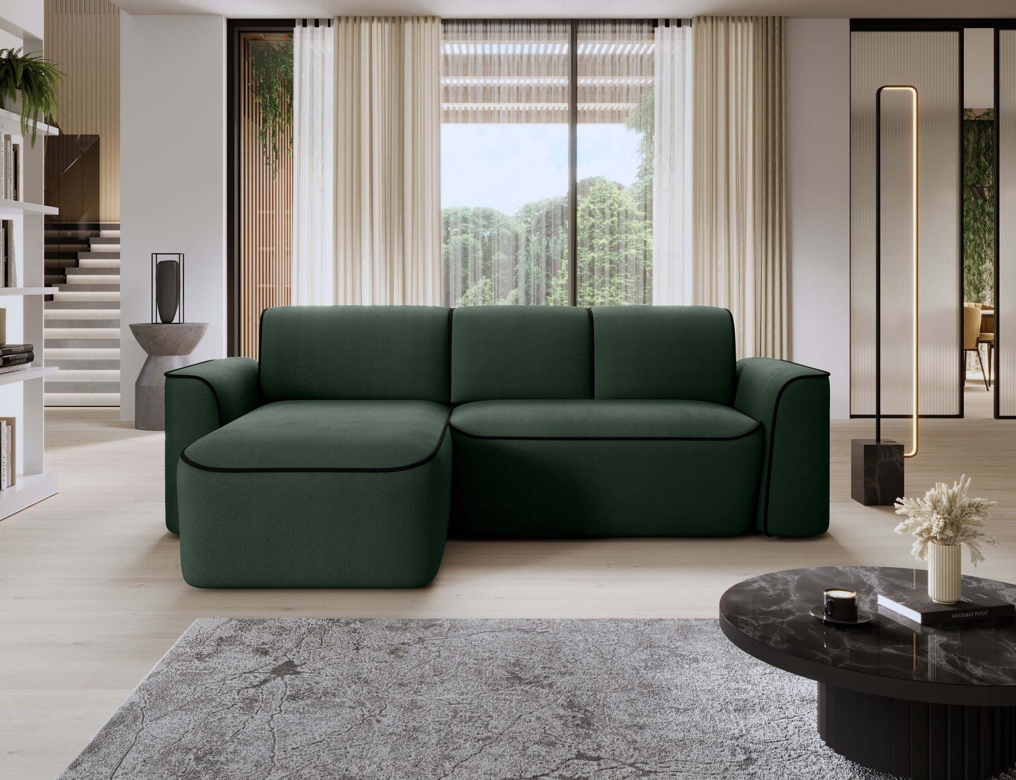 Sedací souprava UME se pyšní moderním designem, který se snadno začlení do jakéhokoli interiéru. Její elegantní linie a kvalitní potahové materiály dodávají prostoru nádech luxusu. Díky levostrannému provedení je ideální pro umístění do rohu místnosti, čímž efektivně využijete prostor.