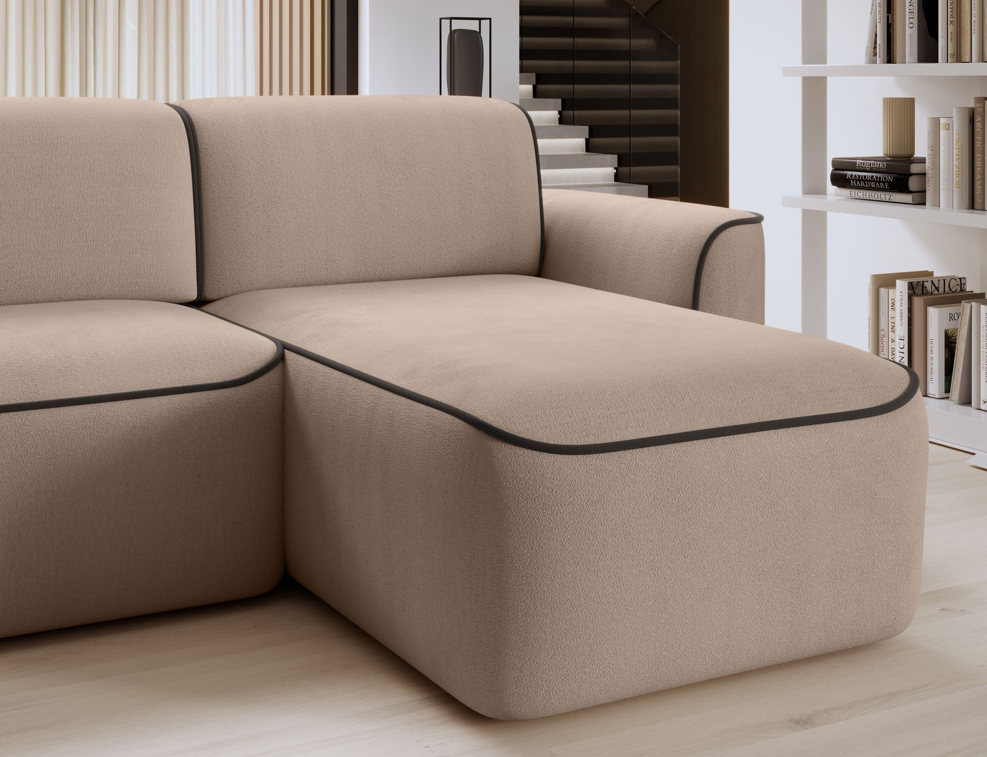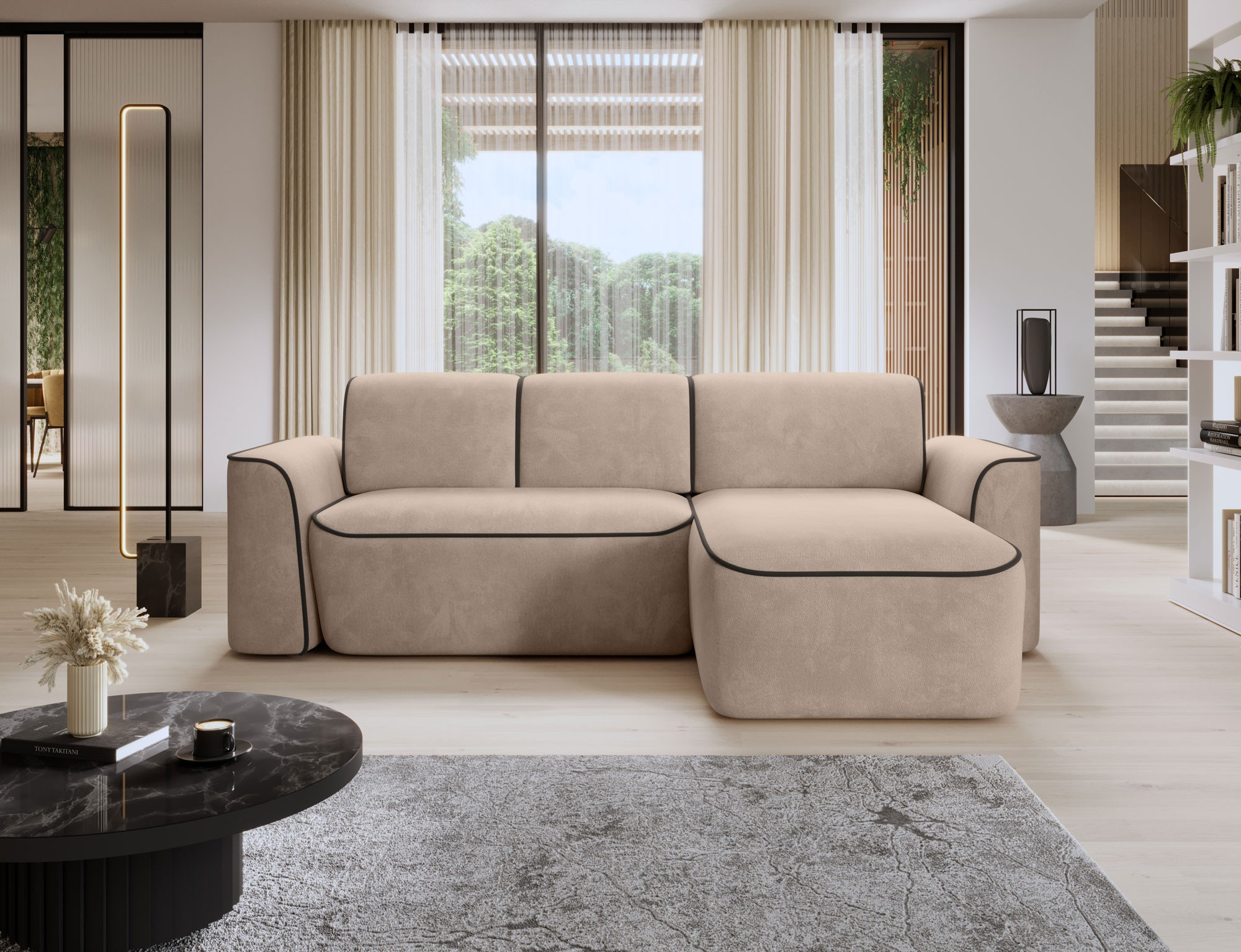 Sedací souprava UME se pyšní moderním designem, který se snadno začlení do jakéhokoli interiéru. Její elegantní linie a kvalitní potahové materiály dodávají prostoru nádech luxusu. Díky levostrannému provedení je ideální pro umístění do rohu místnosti, čímž efektivně využijete prostor.