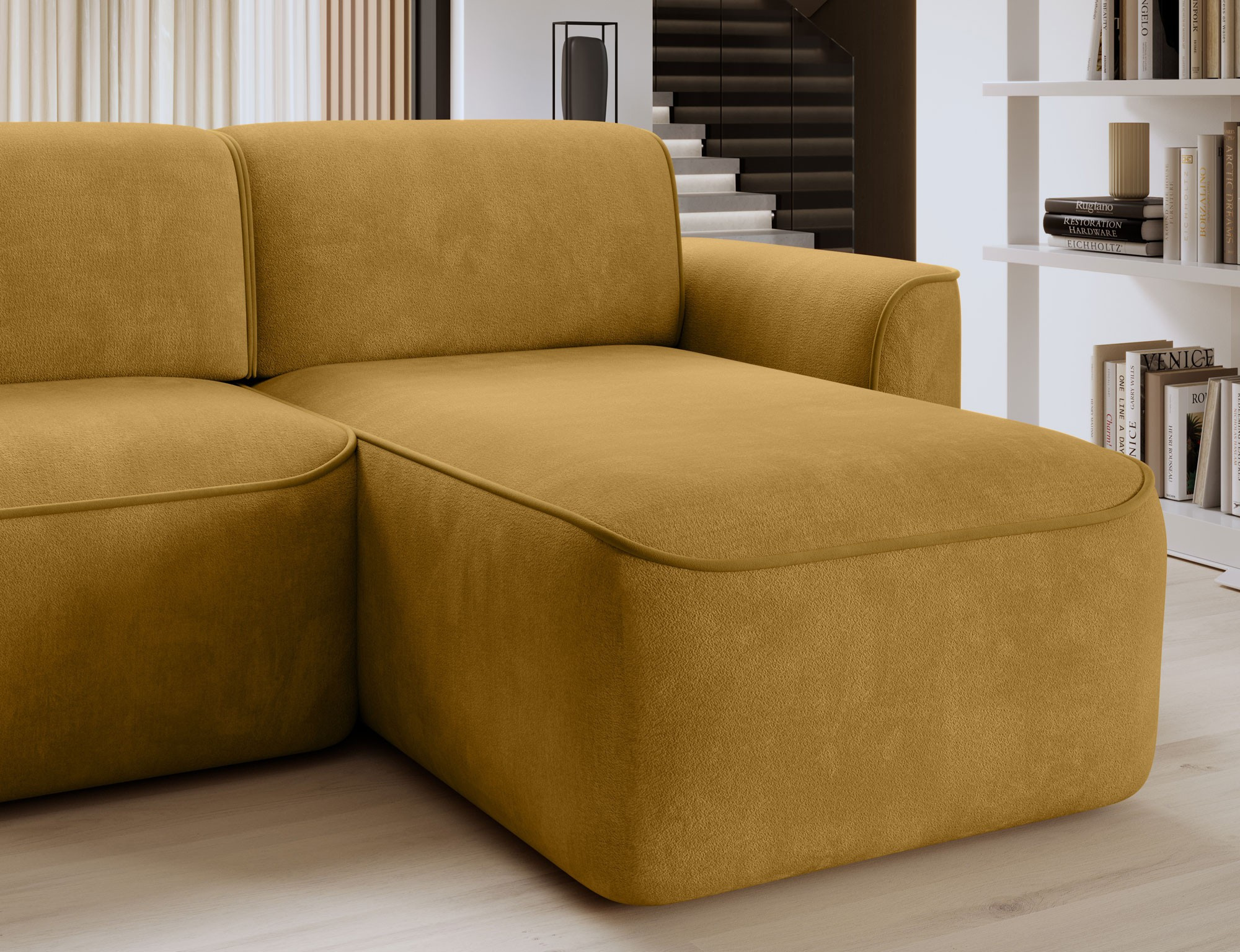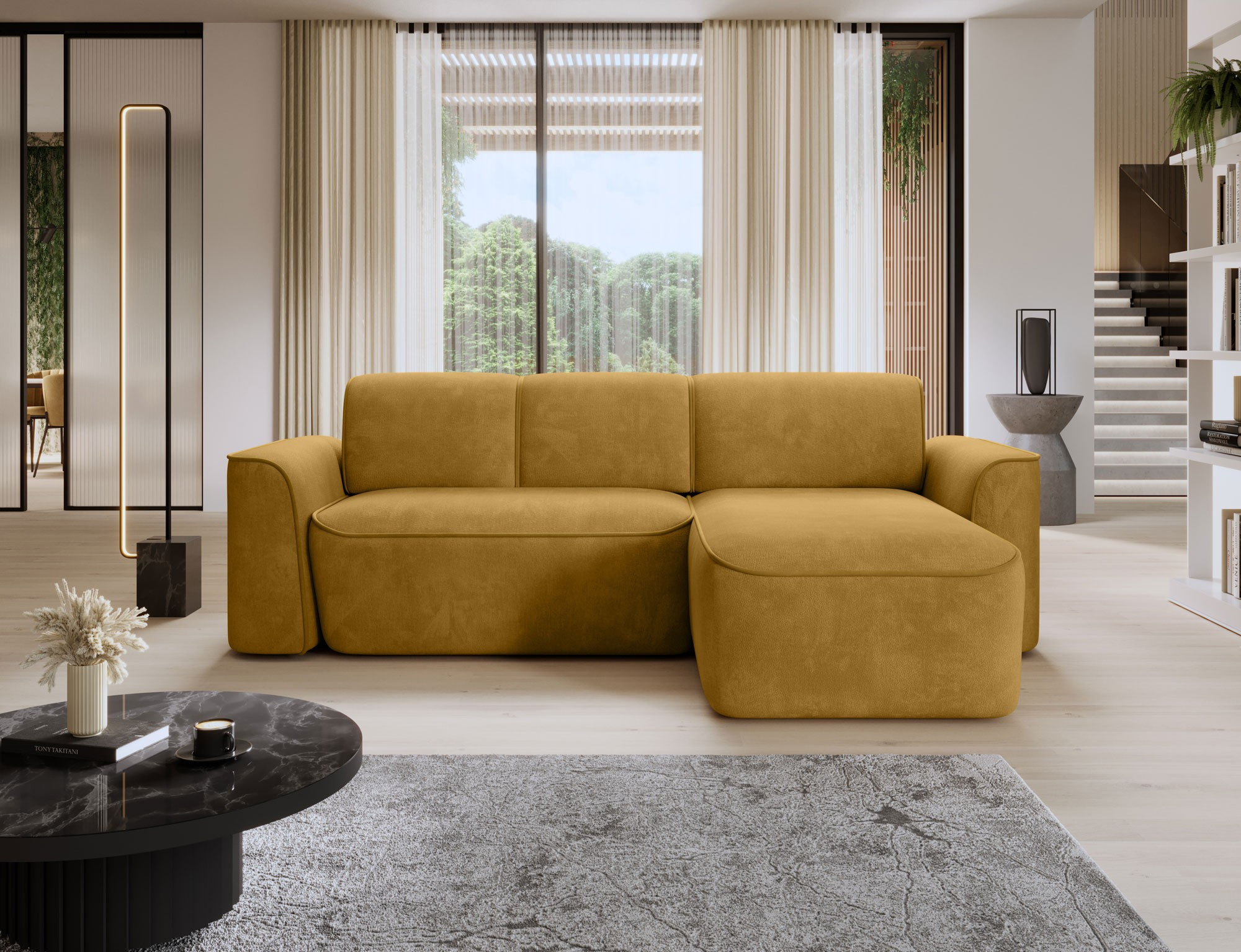 Sedací souprava UME se pyšní moderním designem, který se snadno začlení do jakéhokoli interiéru. Její elegantní linie a kvalitní potahové materiály dodávají prostoru nádech luxusu. Díky levostrannému provedení je ideální pro umístění do rohu místnosti, čímž efektivně využijete prostor.