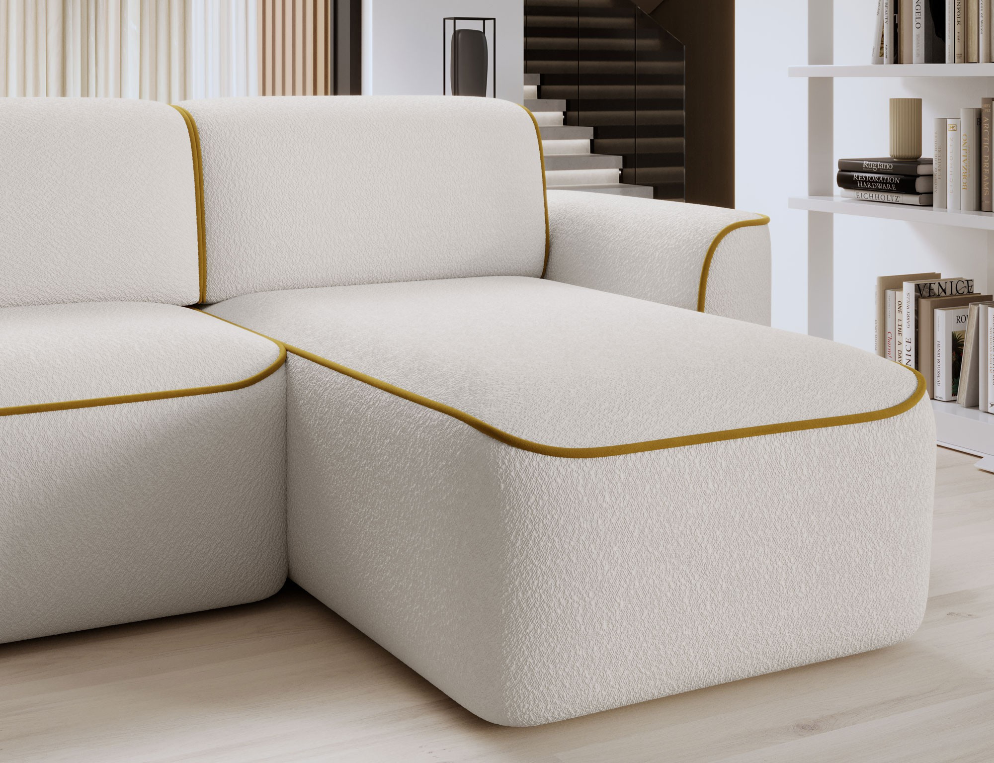 Sedací souprava UME se pyšní moderním designem, který se snadno začlení do jakéhokoli interiéru. Její elegantní linie a kvalitní potahové materiály dodávají prostoru nádech luxusu. Díky levostrannému provedení je ideální pro umístění do rohu místnosti, čímž efektivně využijete prostor.
