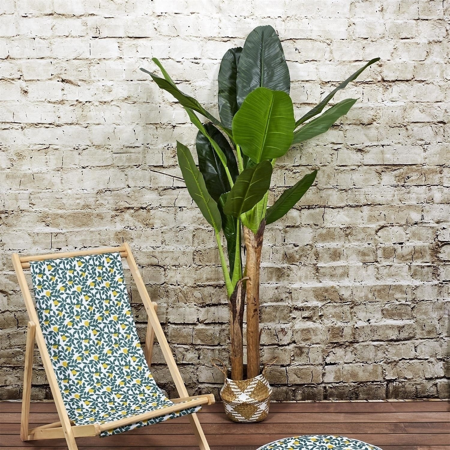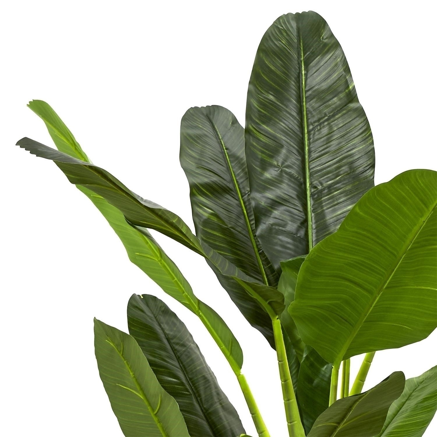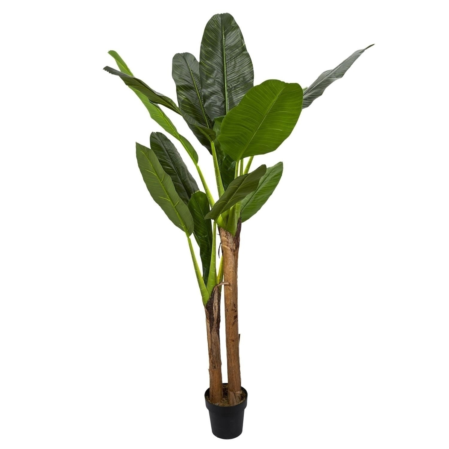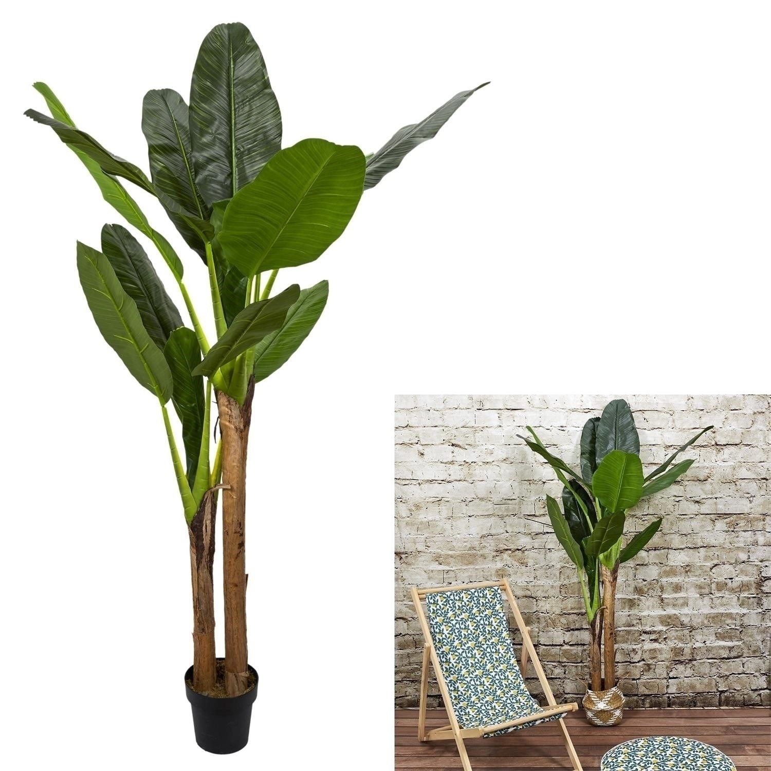 Velký umělý banánovník je rostlina, která nevyžaduje naši pozornost. Nemusíme ji zalévat, hnojit ani bojovat proti škůdcům, a přesto je stále zelená s krásným, bujným chocholem listů. Banánovník o výšce až 160 cm se hodí na místo, kde máme prázdný prostor. Dodá přirozený vzhled, protože umělá rostlina dokonale imituje skutečný stromek. Vyrobená z plastu v rovněž plastovém květináči.