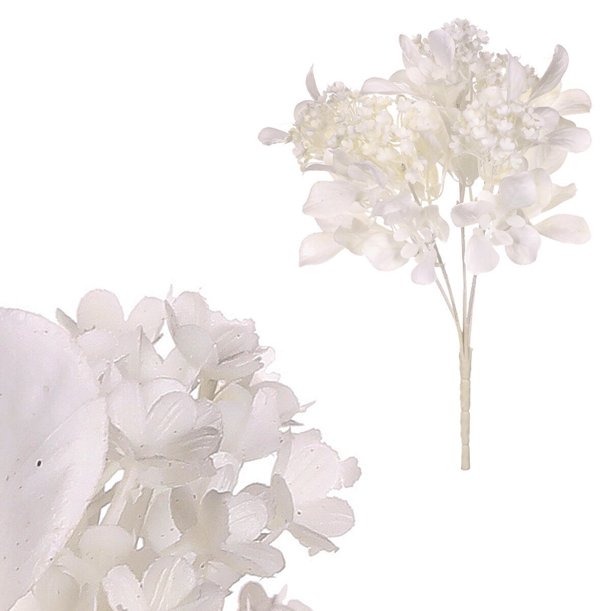 Umělá bílá květoucí kytice představuje nenáročnou a trvanlivou alternativu k živé rostlině svého druhu. Svým zpracováním s důrazem na detaily vypadá téměř jako živá, jen v netypickém barevném dekoru. Nikdy neuvadne, neztratí ze své barevnosti a nepotřebuje žádnou péči. Nabízí širokou škálu možností využití, a to i opakovaného. Může být součástí výzdoby interiéru pro vaše vlastní potěšení. Taktéž se hodí do komplexních květinových aranží v místech, kde bude probíhat plánovaná oslava, nebo jiná společenská událost.
