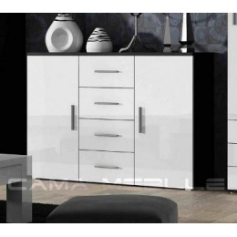 Komoda UNI, matná černá/lesklá bílá