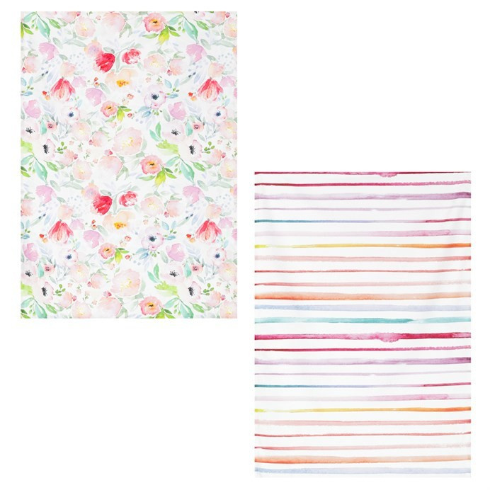 Utěrka – s květinami nebo pruhy, 100% bavlna, cena za sadu 2 ks