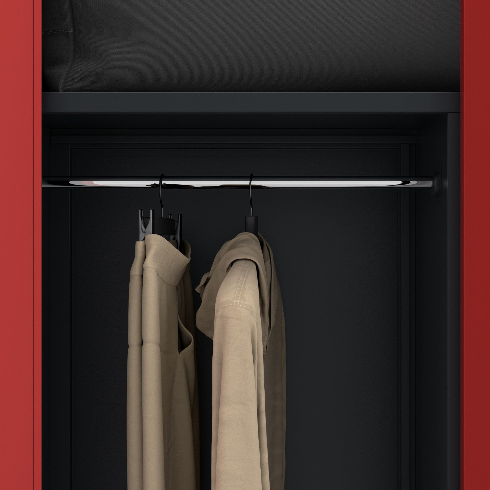 Pro ty, kteří potřebují uskladnit oblečení, je skříň DAWID vybavena tyčí na ramínka. Tato tyč je umístěna ve vysoké nice a umožňuje pohodlné zavěšení košil, bund, sak a dalších oděvů, které se tak nebudou mačkat a budou vždy připraveny k nošení. Díky tomuto promyšlenému uspořádání můžete maximálně využít vnitřní prostor skříně a mít všechny své věci přehledně uspořádané.