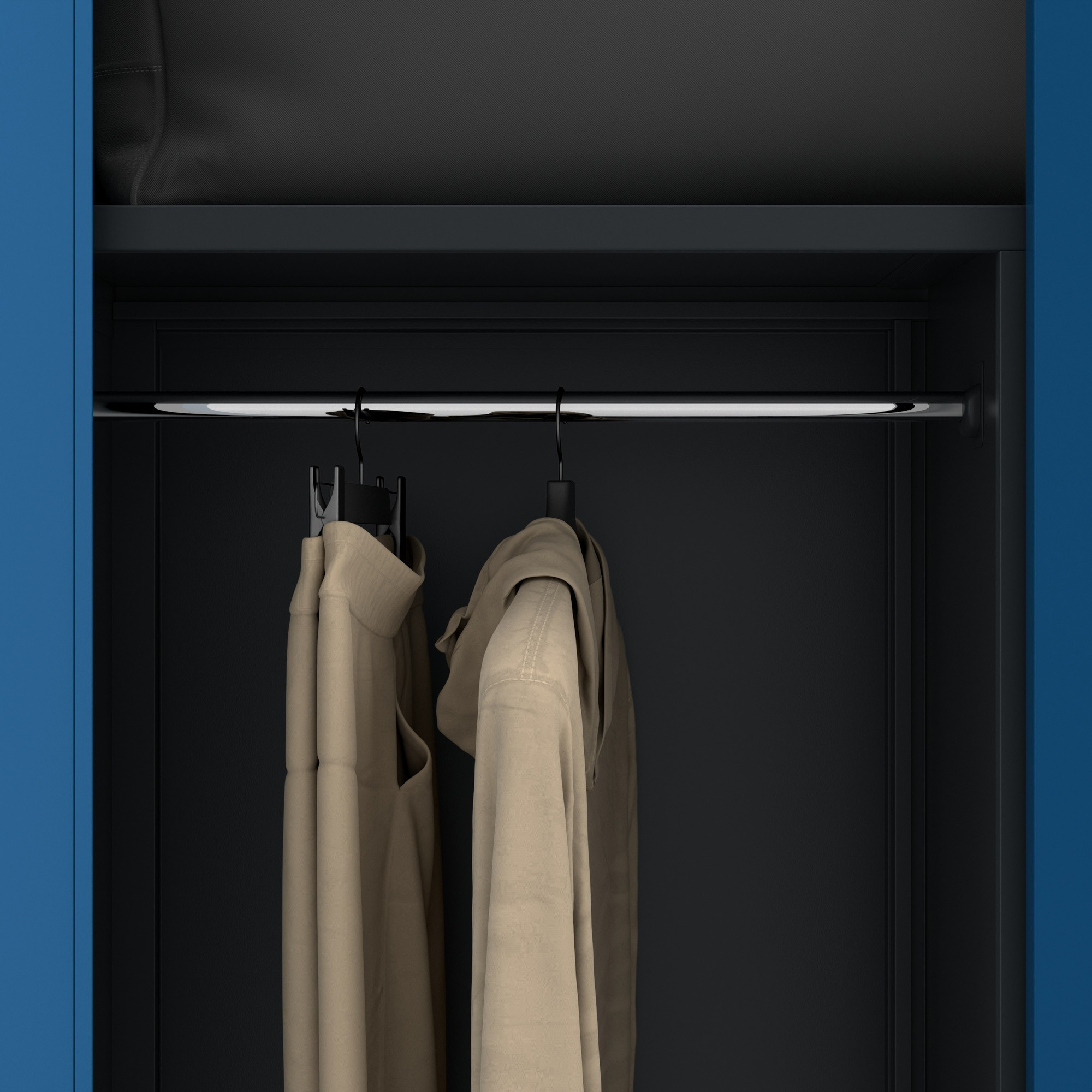 - Tyč na ramínka: Umožňuje pohodlné zavěšení oblečení, aby se nepomačkalo. Ideální pro pracovní oděvy, uniformy nebo kabáty.