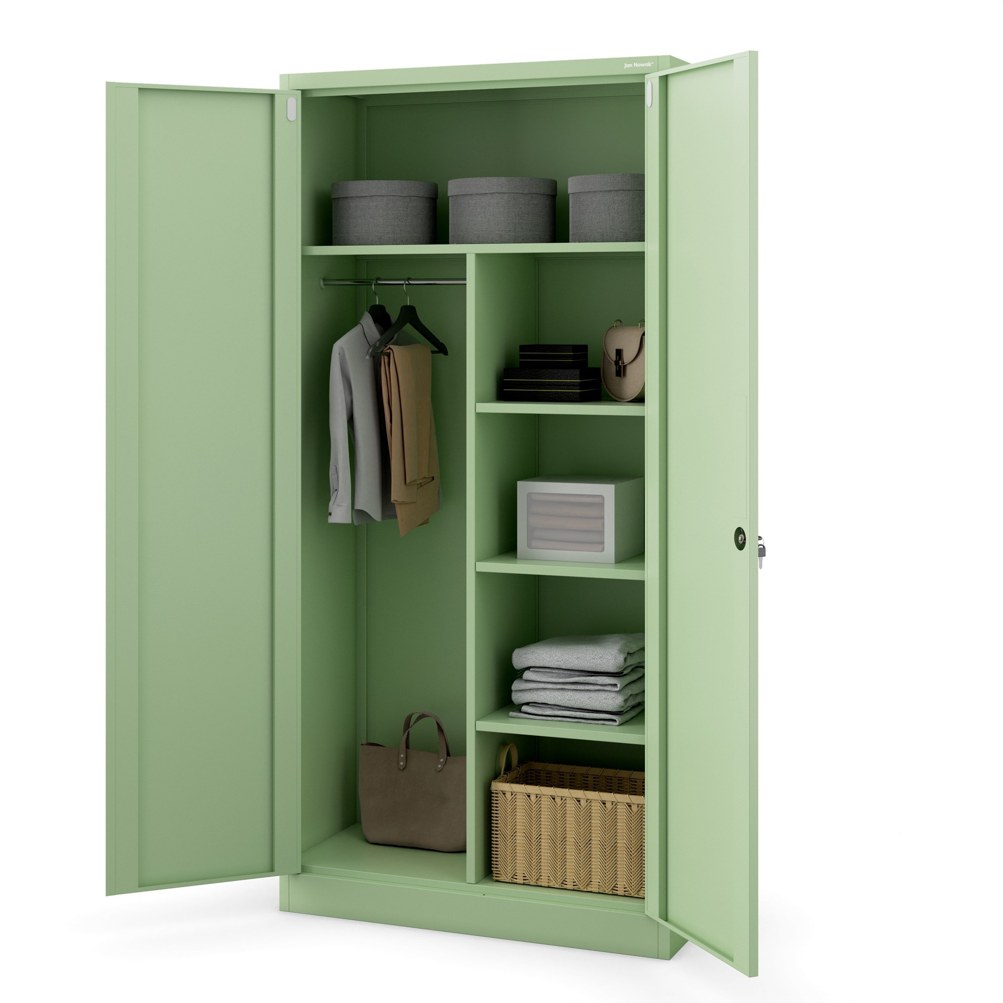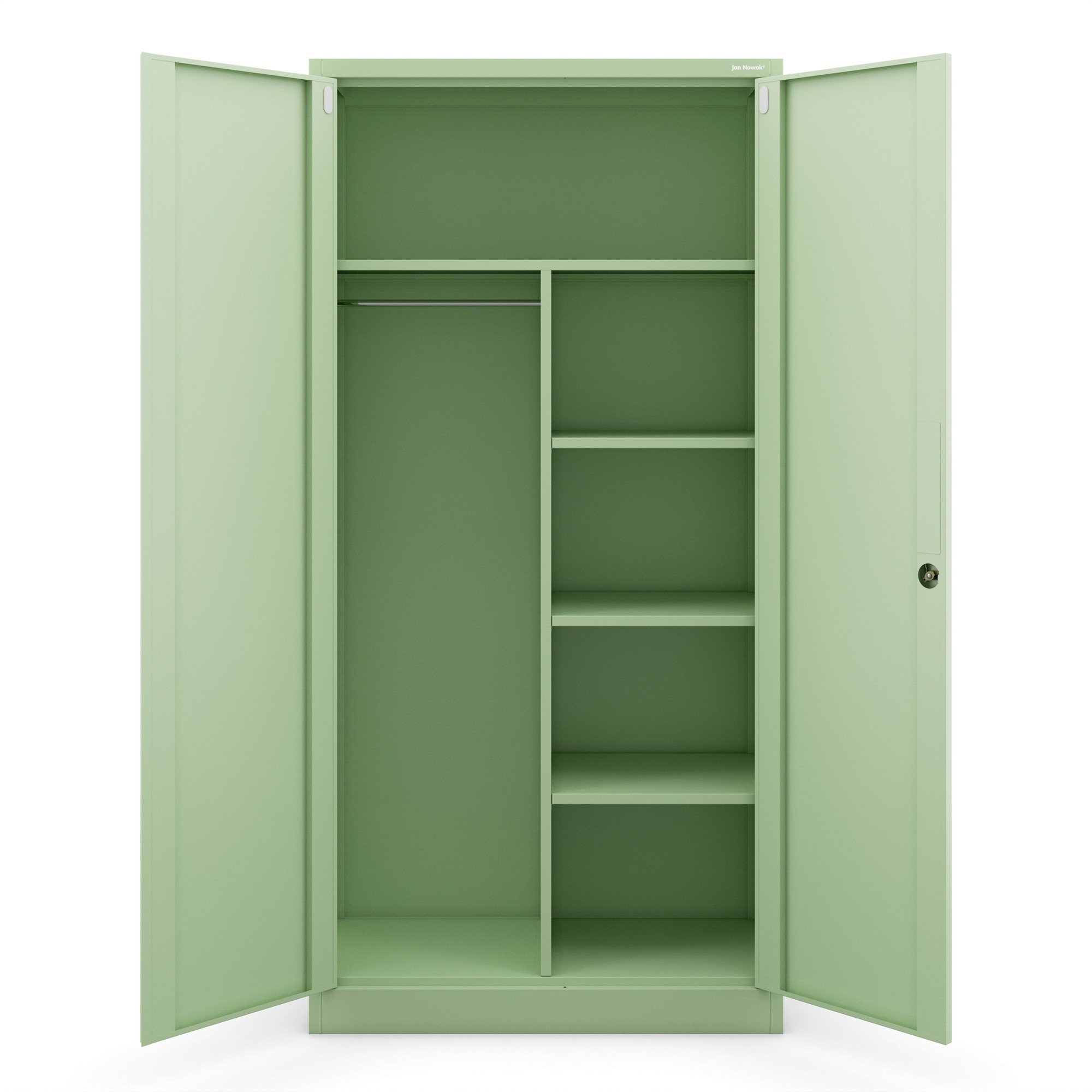 Zapomeňte na nudné a fádní skříně! DAWID přichází v osvěžující pastelové zelené barvě (RAL 6019), která vnese do vašeho interiéru svěžest a originalitu. Tato barva je nejen moderní a trendy, ale také se snadno kombinuje s ostatními barvami a materiály. Skříň DAWID se tak stane výrazným, ale zároveň harmonickým prvkem vašeho prostoru.