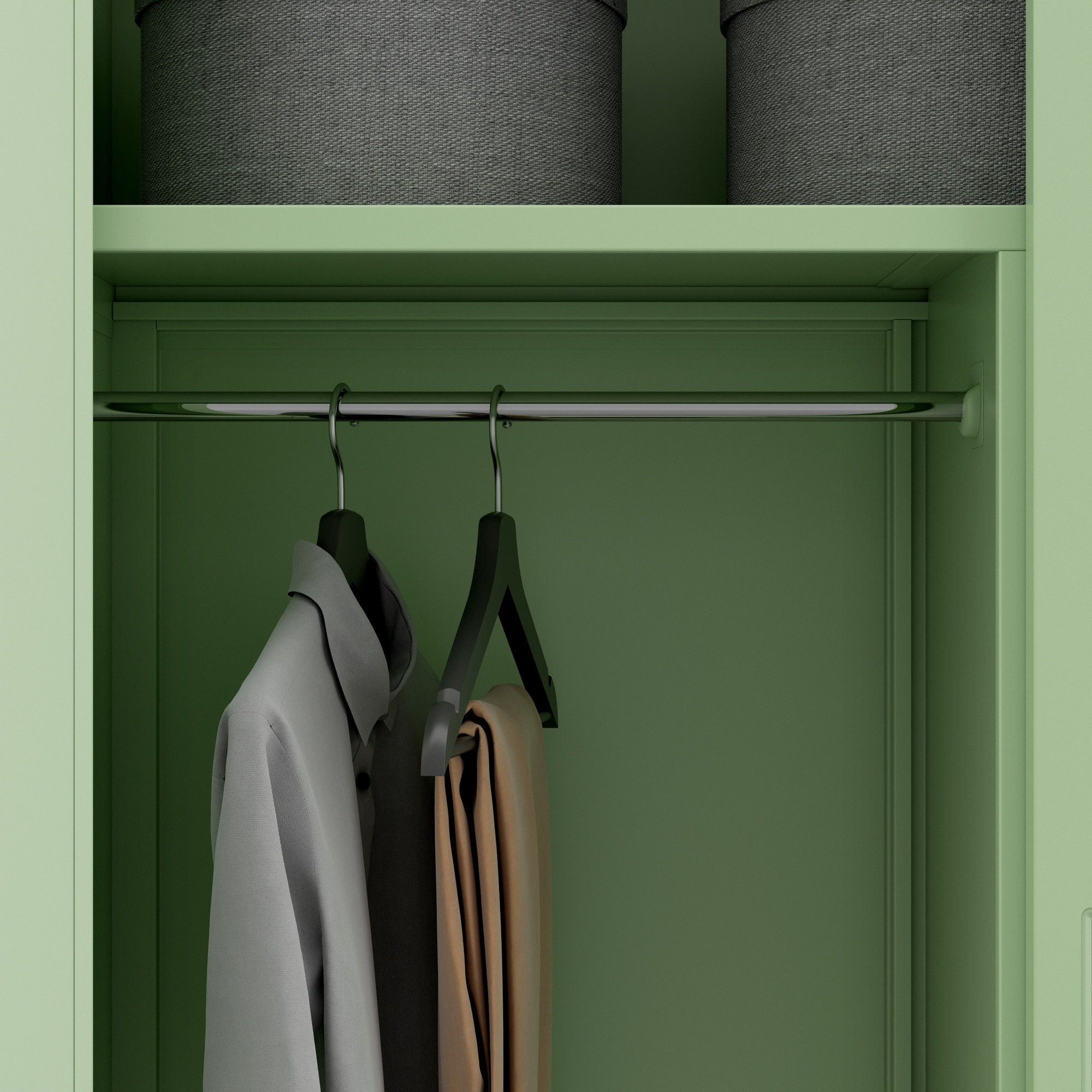 - Vysoká sekce s tyčí: Ideální pro zavěšení košil, šatů, sak a kabátů. Vaše oblečení bude vždy perfektně vyžehlené a připravené k nošení.