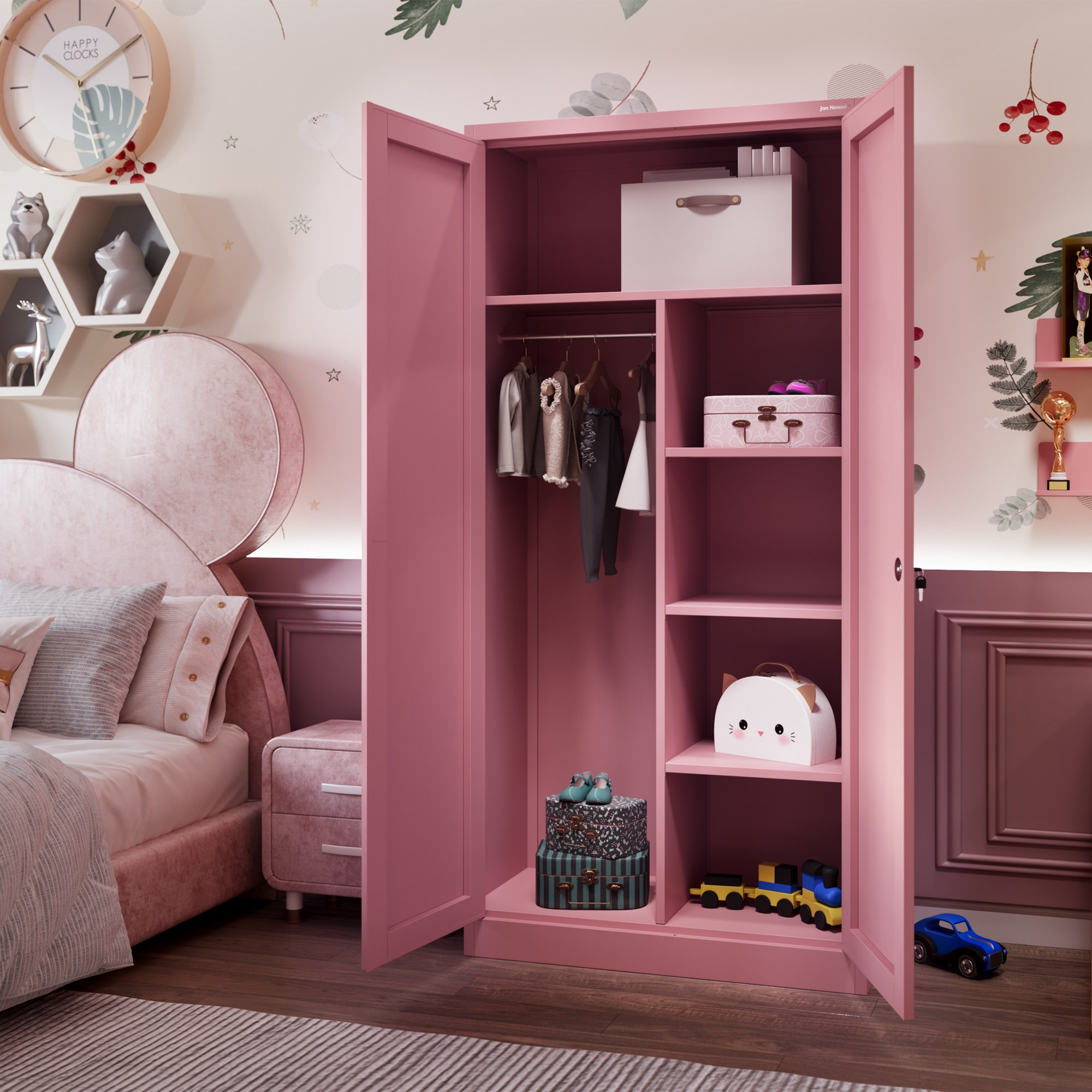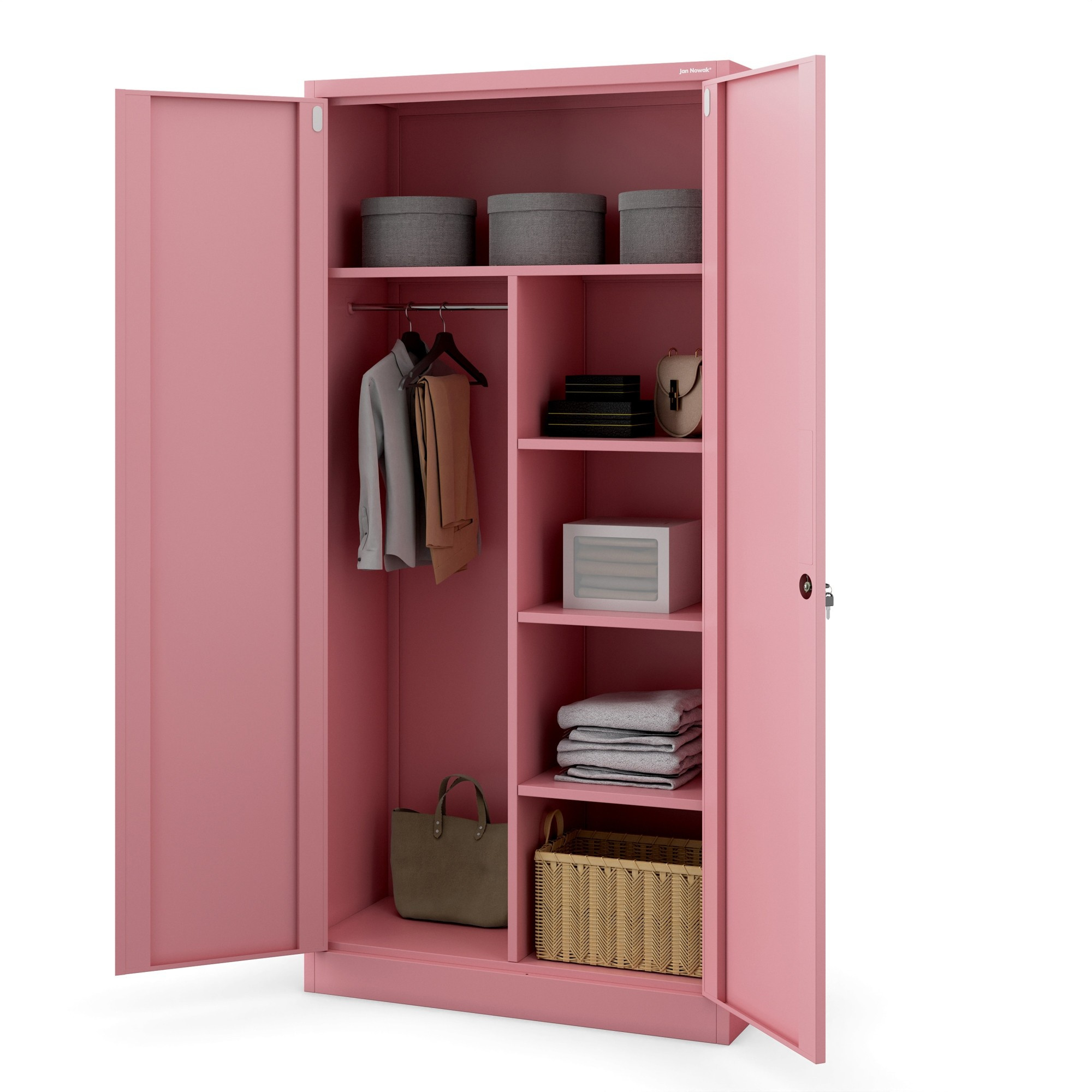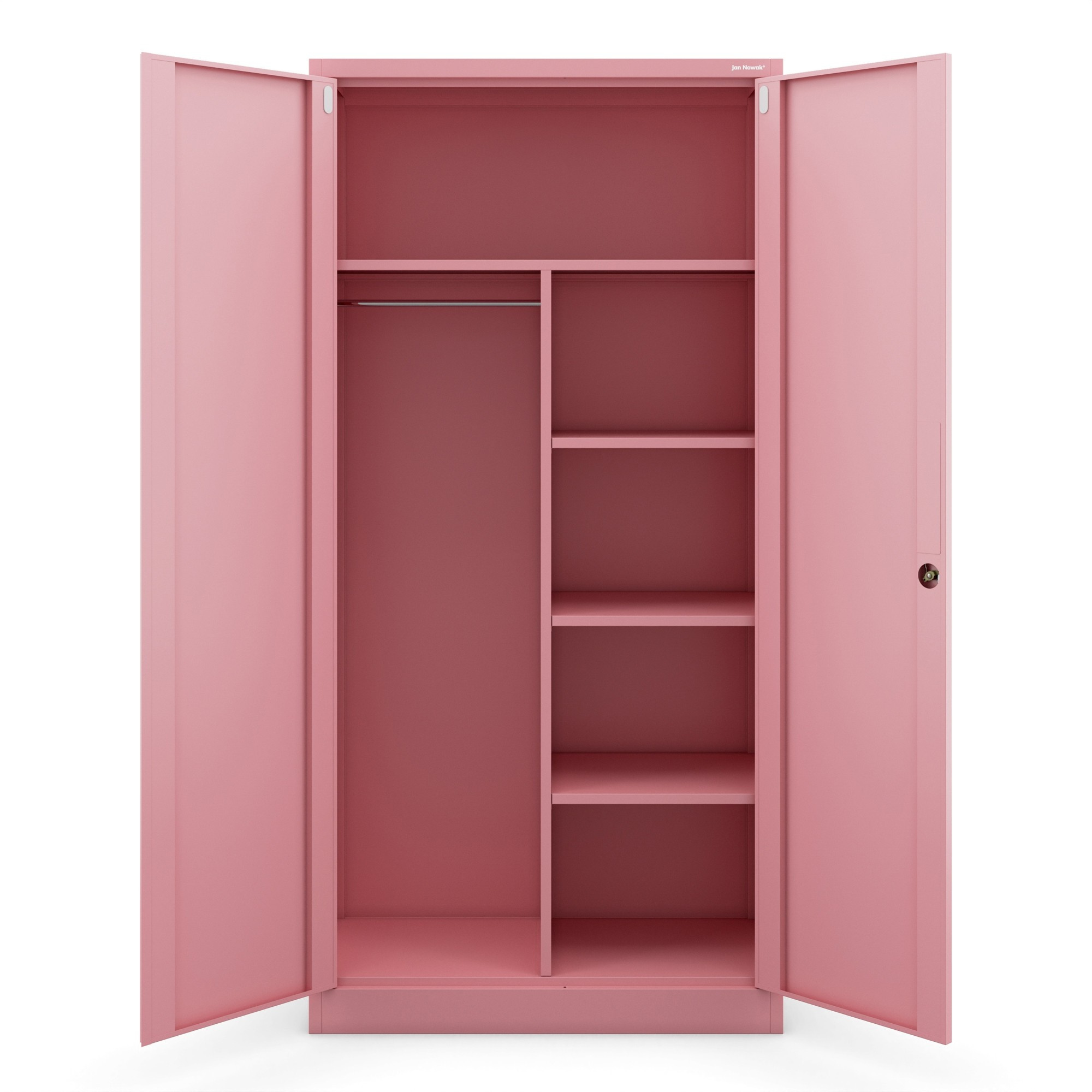 Skříň DAWID z kolekce Fresh Style přináší do vašeho domova svěží vánek. Její pudrově růžová barva (RAL 3015) je nejen moderní, ale i uklidňující a snadno se kombinuje s ostatním nábytkem. Tato barva dodá vašemu interiéru jemnost a eleganci, ať už ji umístíte do ložnice, obývacího pokoje nebo kanceláře.