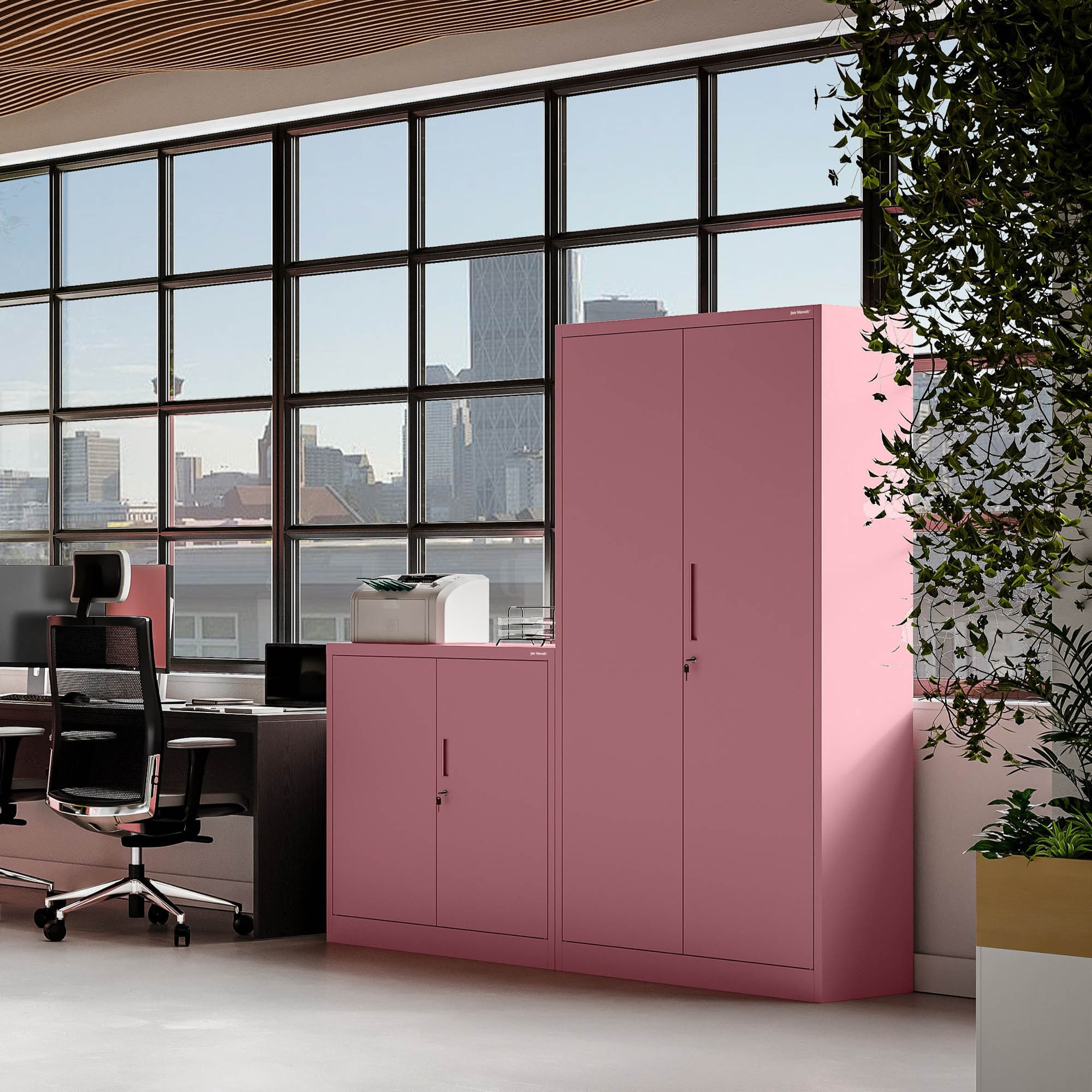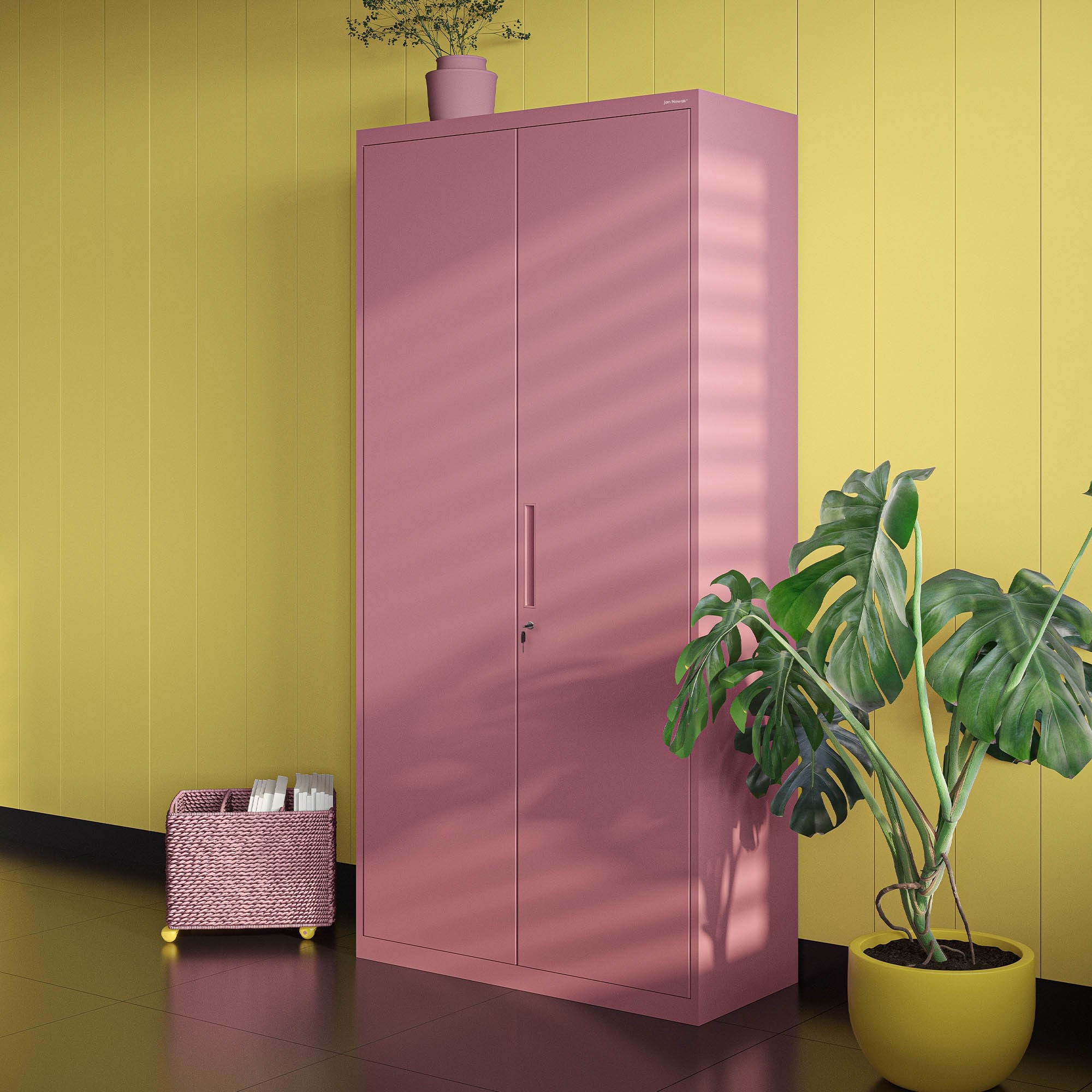 Uzamykatelná úklidová skříň DAVID, 900 x 1850 x 450 mm, Fresh Style: pudrově růžová