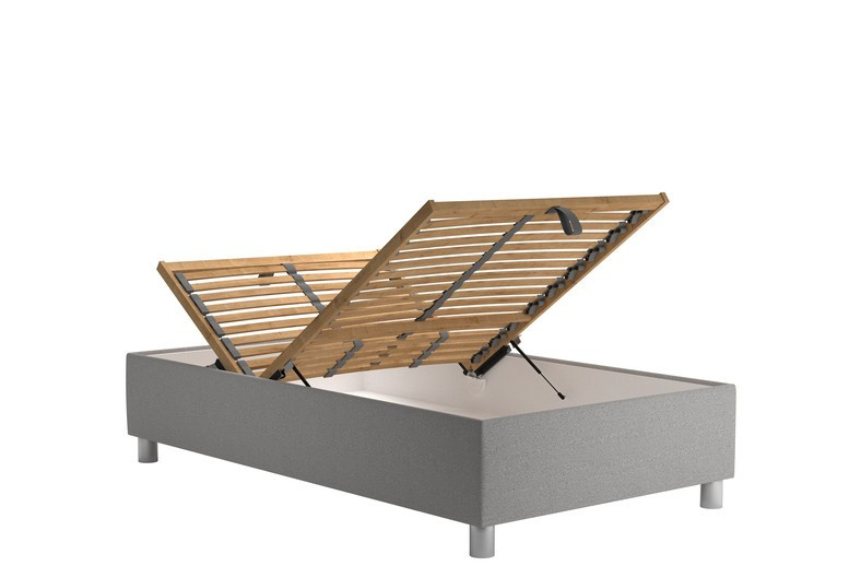 Úložný prostor lůžka se otevírá za pomoci plynových pístů od nohou postele.