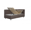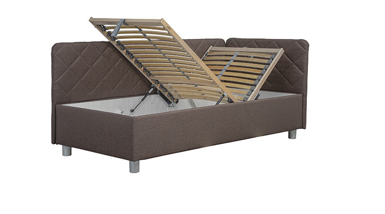 Flynn je polohovací válenda, která je uložena na lamelovém roštu. Rošt je vybavený polohováním pro hlavu (7 poloh) i nohy (1 poloha). Samozřejmostí je i velký úložný prostor na lůžkoviny, který je přístupný od nohou a zvedá se pomocí plynových pístů.U této válendy máte možnost výběru volně ložené matrace.Postel lze zakoupit ve variantě bez čela nebo až se 3 čely dle vašeho výběru. Válenda se vyrábí v rozměrech 90 x 200 cm a 110 x 200 cm.Výška lehací plochy je 38 cm. Postel je dodávána v demontu, BEZ MATRACE a BOČNÍCH ČEL. Pro objednávku bočních čel nás kontaktujte.