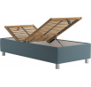 Jedinečná konstrukce této válendy umožňuje moderní a praktické řešení pro spánek dětí i dospělých. Základem lůžka je 28 lamelový rošt s mechanickým polohováním hlavy a nohou (7 poloh hlavy, 1 poloha nohou), s nastavením tuhosti lamel a s popruhem proti přetížení. Rošt se skládá z 28 lamel uložených ve výkyvných kaučukových pouzdrech. Snadnější manipulaci při otevírání úložného prostoru zajišťují plynové písty. Součástí postele je úložný prostor, který se otevírá od nohou (pomocí plynových pístů). Tuto postel nabízíme také v dalších rozměrech. Zboží je dodáváno v demontu.