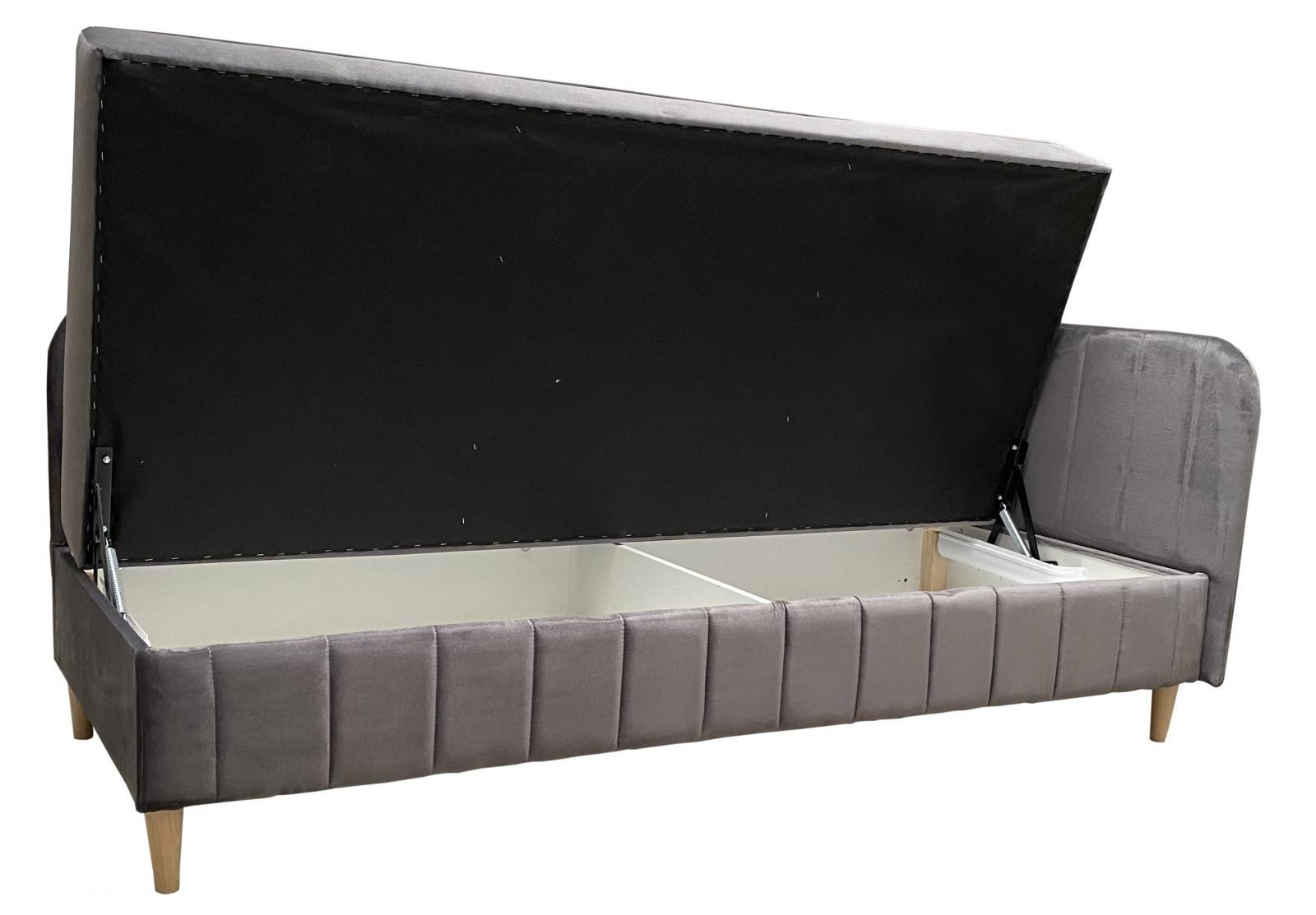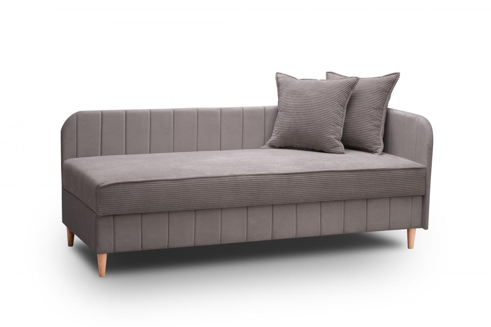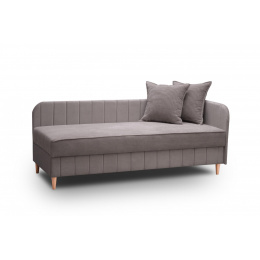 Válenda v moderním designu Biana je vybavena čely a praktickým úložným prostorem, který je přístupný zepředu. Výplň ložné plochy tvoří kombinace pružin bonell s PUR pěnou. Čela válendy jsou univerzální, mohou být umístěna jak na levou tak i na pravou stranu válendy. Válenda je potažena na lehací části kvalitní látkou Poso, která se vyznačuje sametově jemným povrchem a svým typickým vzhledem připomíná manšestr. Korpus válendy a čela jsou potaženy látkou Kronos, která má jemný třpytivý odlesk, je odolná vůči světlu a nežmolkovatí. Vybírat můžete z několika trendy odstínů. Válenda bude dodaná v odstínu, který je vyobrazený v úvodních fotografiích.