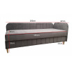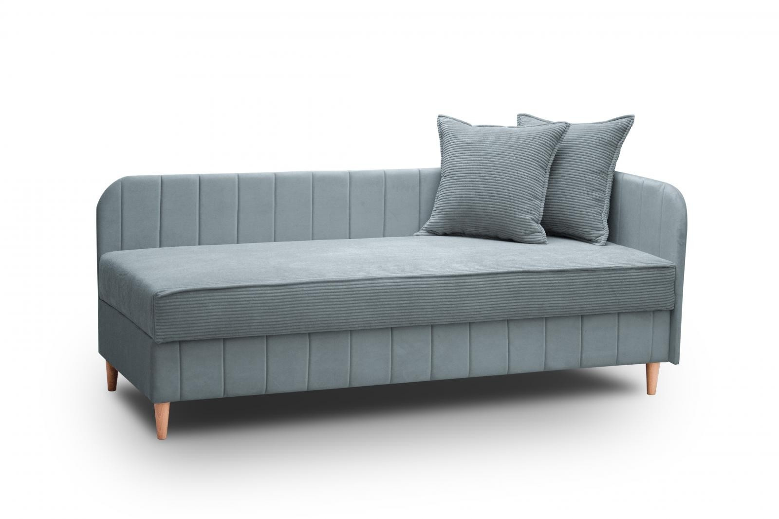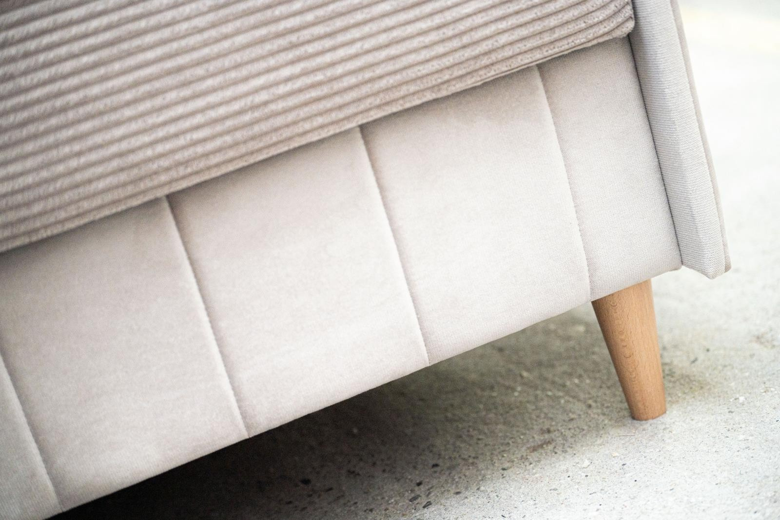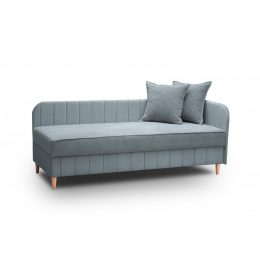 Válenda v moderním designu Biana je vybavena čely a praktickým úložným prostorem, který je přístupný zepředu. Výplň ložné plochy tvoří kombinace pružin bonell s PUR pěnou. Čela válendy jsou univerzální, mohou být umístěna jak na levou tak i na pravou stranu válendy. Válenda je potažena na lehací části kvalitní látkou Poso, která se vyznačuje sametově jemným povrchem a svým typickým vzhledem připomíná manšestr. Korpus válendy a čela jsou potaženy látkou Paros, která má jemný třpytivý odlesk, je odolná vůči světlu a nežmolkovatí. Vybírat můžete z několika trendy odstínů. Válenda bude dodaná v odstínu, který je vyobrazený v úvodních fotografiích.