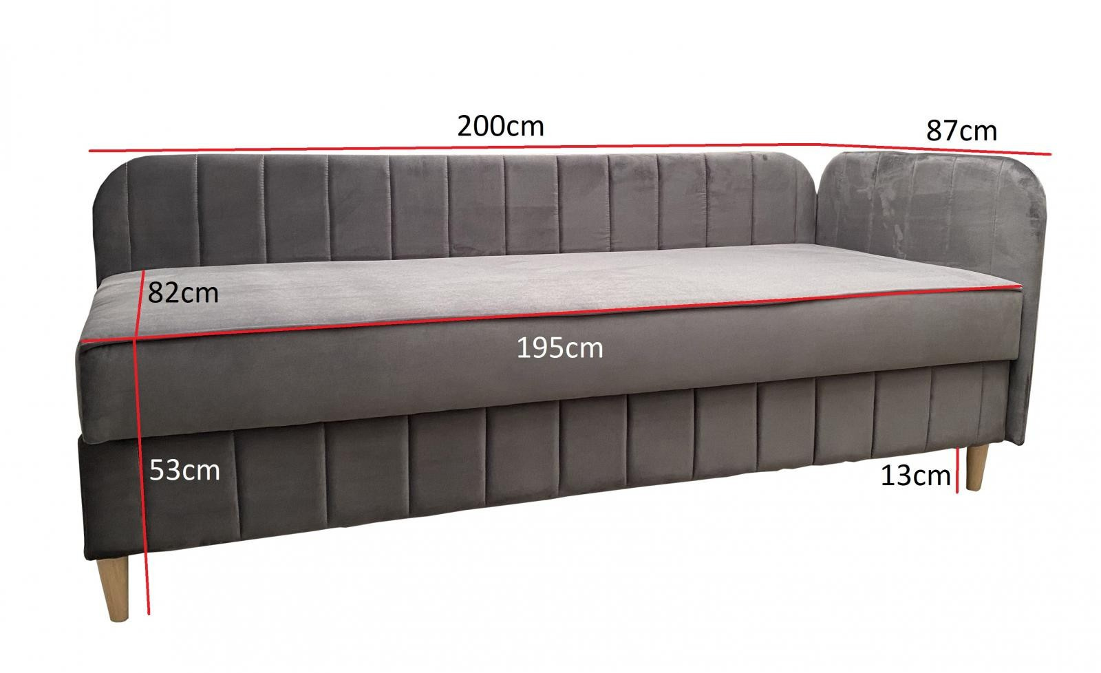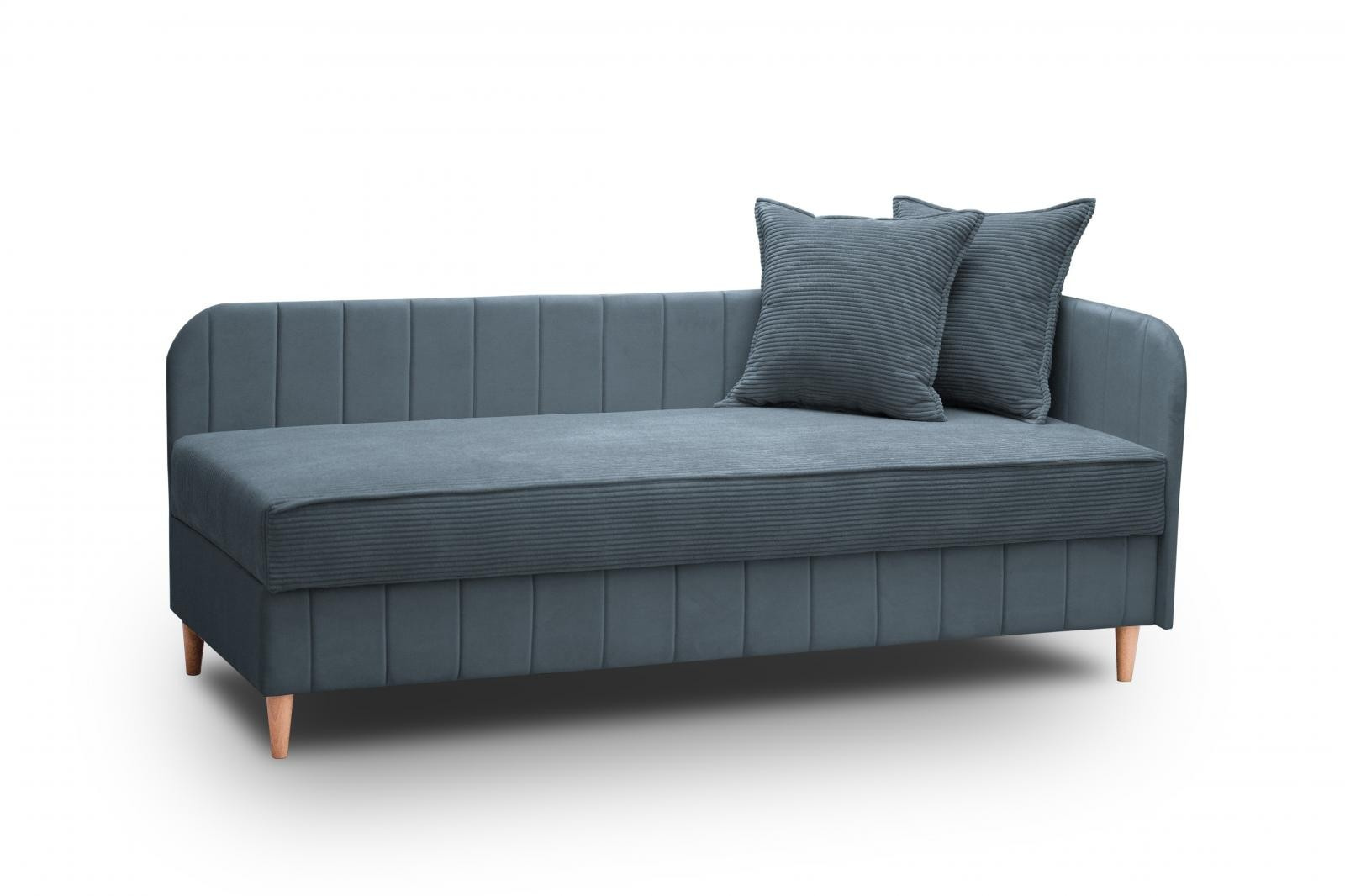 Válenda v moderním designu Biana je vybavena čely a praktickým úložným prostorem, který je přístupný zepředu. Výplň ložné plochy tvoří kombinace pružin bonell s PUR pěnou. Čela válendy jsou univerzální, mohou být umístěna jak na levou tak i na pravou stranu válendy. Válenda je potažena na lehací části kvalitní látkou Poso, která se vyznačuje sametově jemným povrchem a svým typickým vzhledem připomíná manšestr. Korpus válendy a čela jsou potaženy látkou Paros, která má jemný třpytivý odlesk, je odolná vůči světlu a nežmolkovatí. Vybírat můžete z několika trendy odstínů. Válenda bude dodaná v odstínu, který je vyobrazený v úvodních fotografiích.