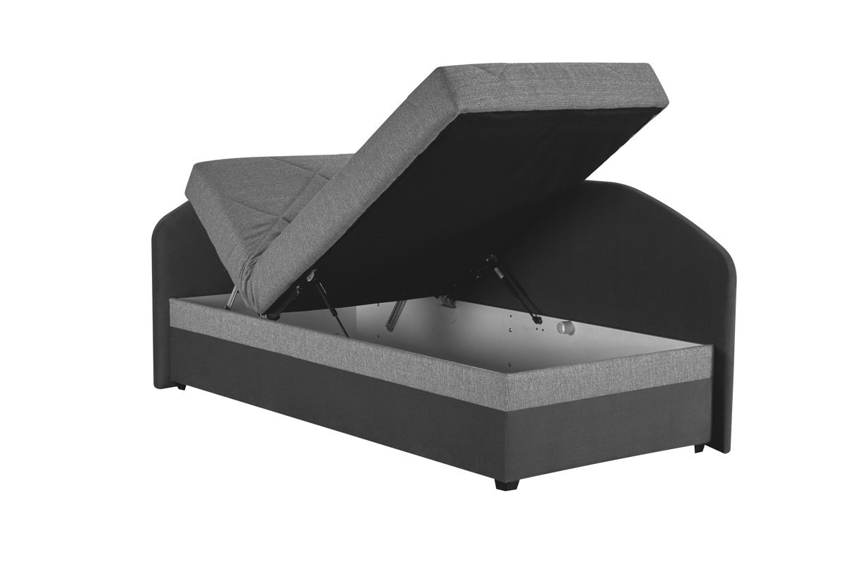 Torino je polohovací válenda s elastickou PUR matrací, která je uložena na lamelovém roštu. Plocha pro spaní je 90x200 cm s komfortní výškou lehací plochy 53 cm. Speciálně strukturovaný povrch jádra matrace zajišťuje dobré přizpůsobení se tělu a optimální proudění vzduchu. To je důležité pro dosažení správného spánkového klimatu. Rošt je vybavený polohováním pro hlavu (5 poloh) i nohy (1 poloha). Samozřejmostí je i velký úložný prostor na lůžkoviny, který je přístupný od nohou. Válenda nemá zadní část čalouněnou potahovou látkou, je určena k umístění do rohu ke stěně. Zobrazení barev na fotografii se může od skutečnosti lišit.