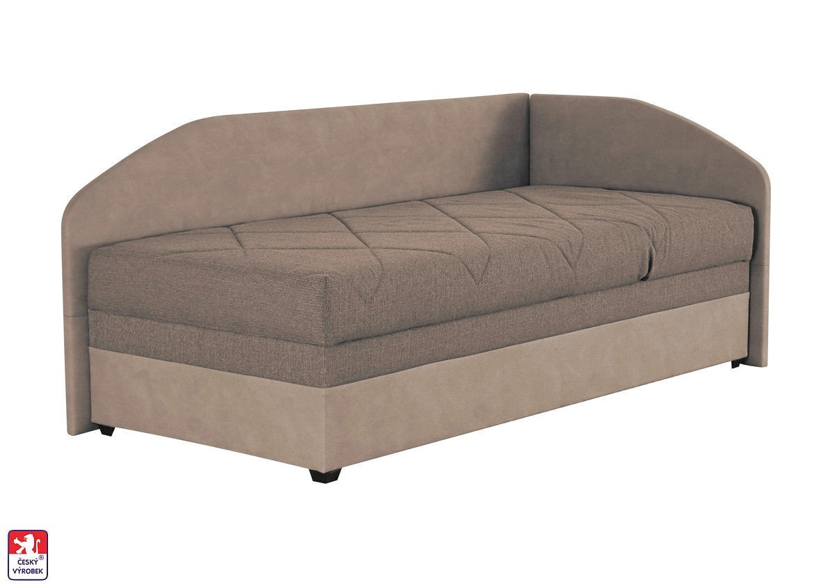 Torino je polohovací válenda s elastickou PUR matrací, která je uložena na lamelovém roštu. Plocha pro spaní je 90x200 cm s komfortní výškou lehací plochy 53 cm. Speciálně strukturovaný povrch jádra matrace zajišťuje dobré přizpůsobení se tělu a optimální proudění vzduchu. To je důležité pro dosažení správného spánkového klimatu. Rošt je vybavený polohováním pro hlavu (5 poloh) i nohy (1 poloha). Samozřejmostí je i velký úložný prostor na lůžkoviny, který je přístupný od nohou. Válenda nemá zadní část čalouněnou potahovou látkou, je určena k umístění do rohu ke stěně. Zobrazení barev na fotografii se může od skutečnosti lišit.