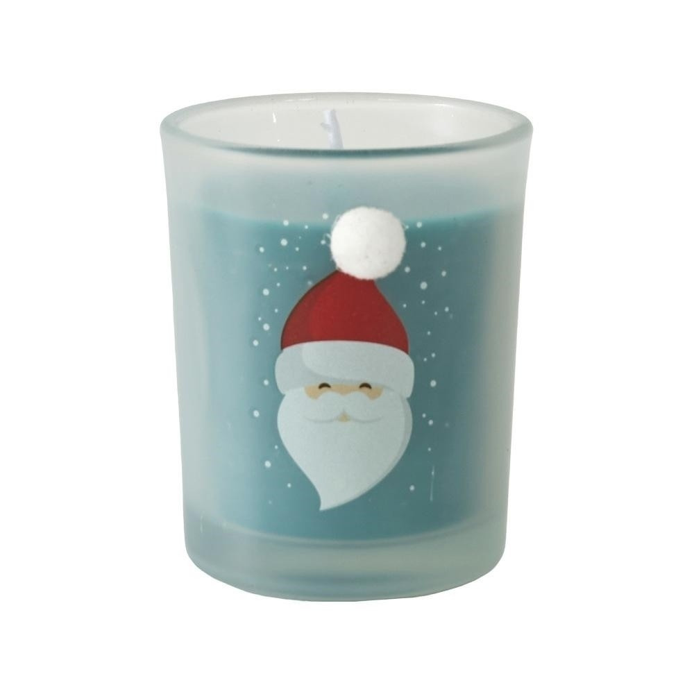 Vánoční svíčka s vánoční vůní. Vonná svíčka v poloprůhledném skleněném svícnu. Sklo svíčky vypadá jako ojíněné, což jí dodává sváteční kouzlo. Vánoční motiv postavy s ozdobným filcovým pomponem. Vůně k výběru: bílá: stromeček, červená: skořice nebo zelená: vanilka, Bavlněný knot, parafín Doba hoření: 8 hodin. Rozměry: 5x5x6 cm Hmotnost 45 g.