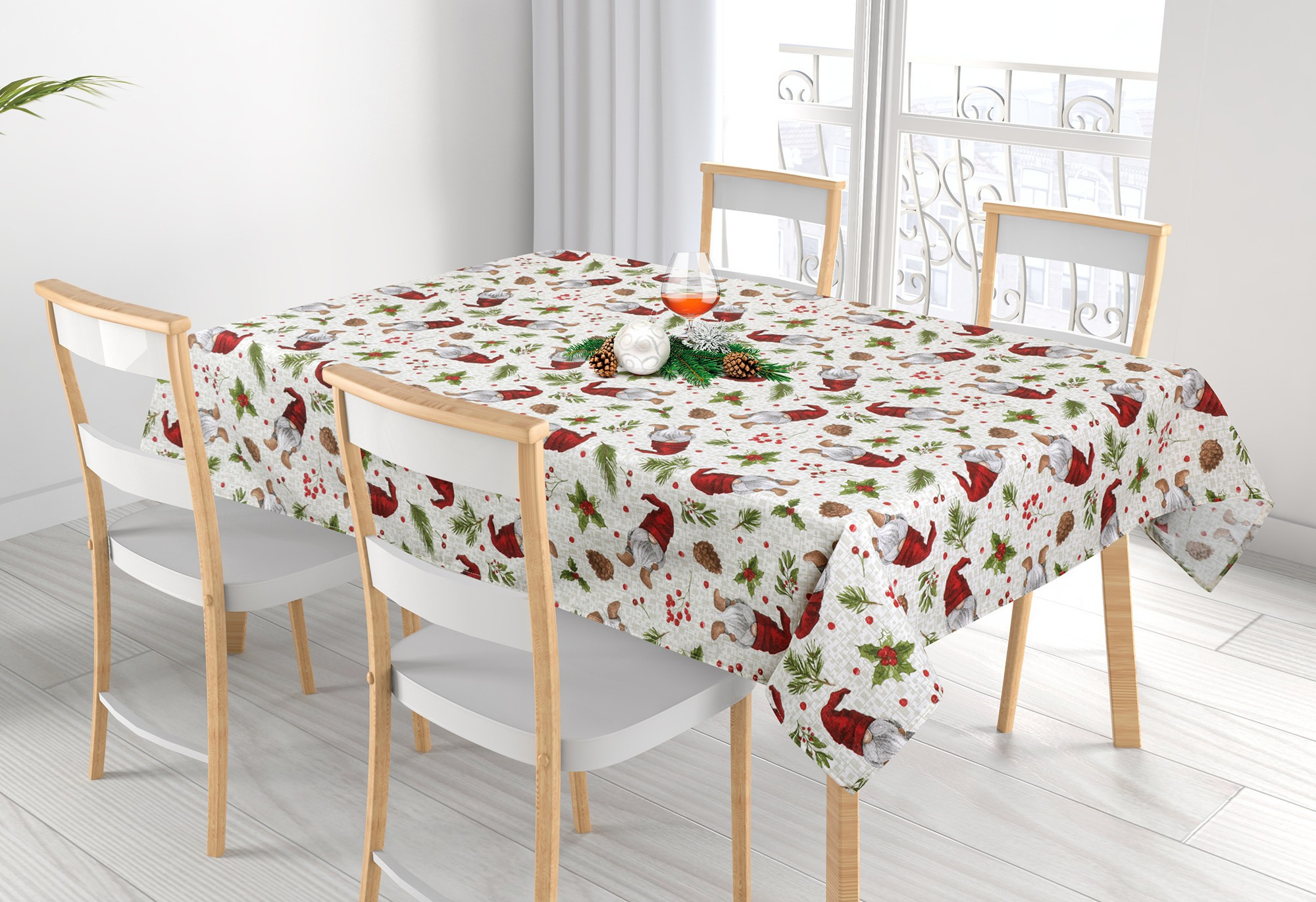 Tento ubrus s vánočním motivem je ušit z kvalitního materiálu, který se odolný vůči poškození. Na Vašem stole bude skvěle vynikat a stane se oblíbeným doplňkem na Vánoce ve Vaší kuchyni. Ve stejném designu je možné objednat i kuchyňskou chňapku nebo povláček na polštářek.