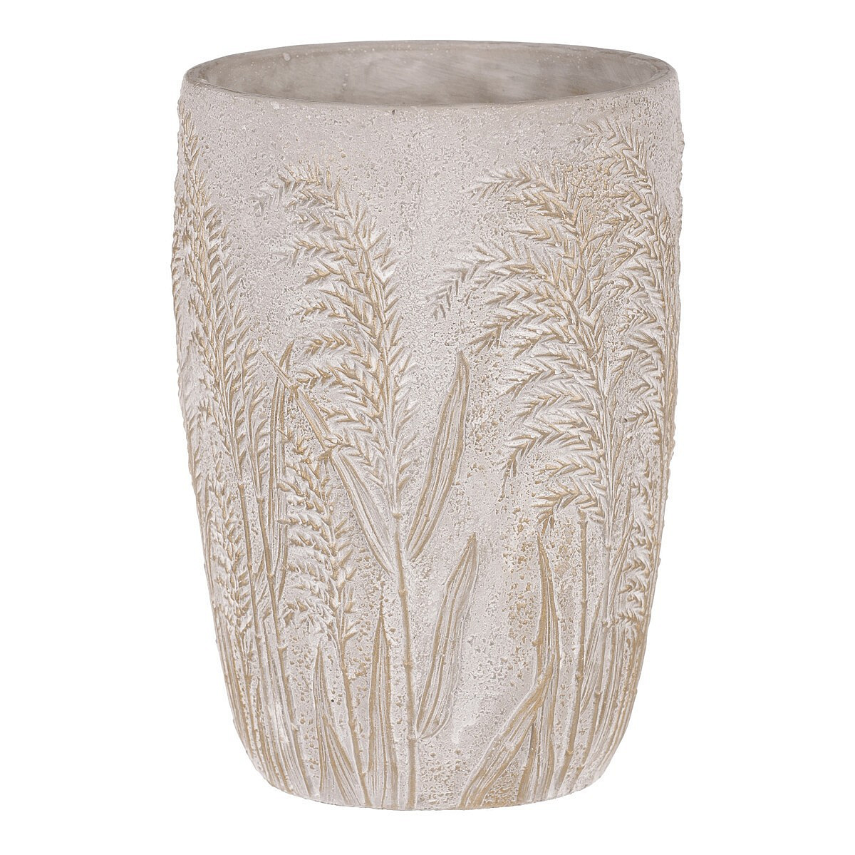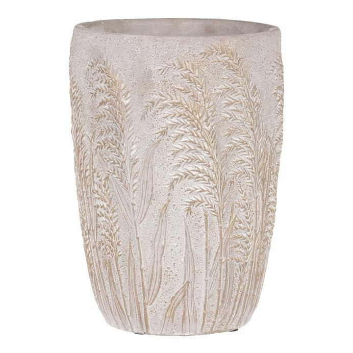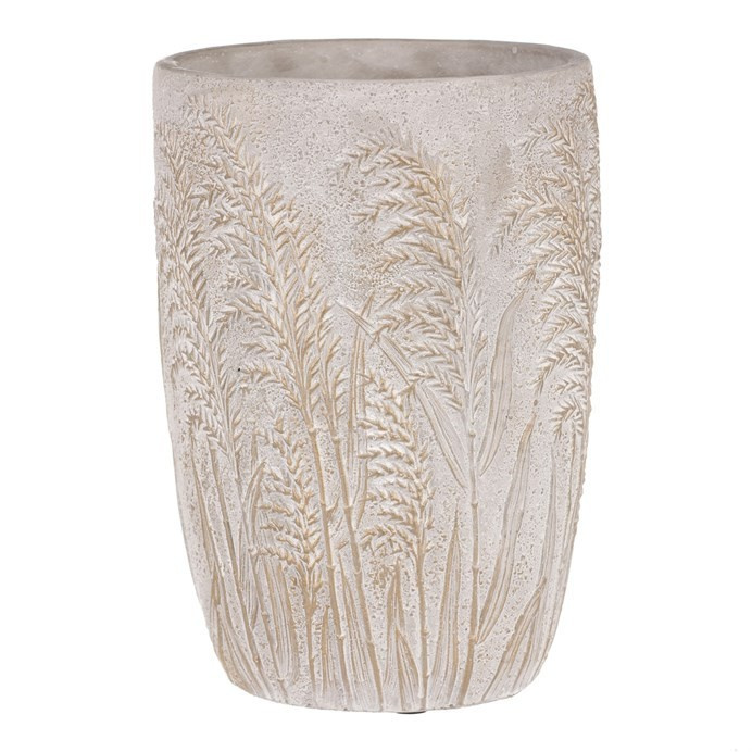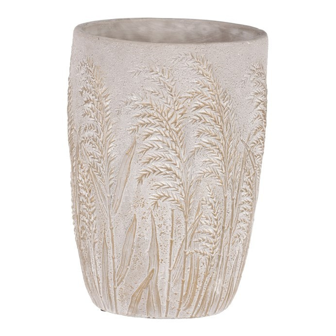 Váza betonová - vzor kvetoucí trávy, šedo-zlatá