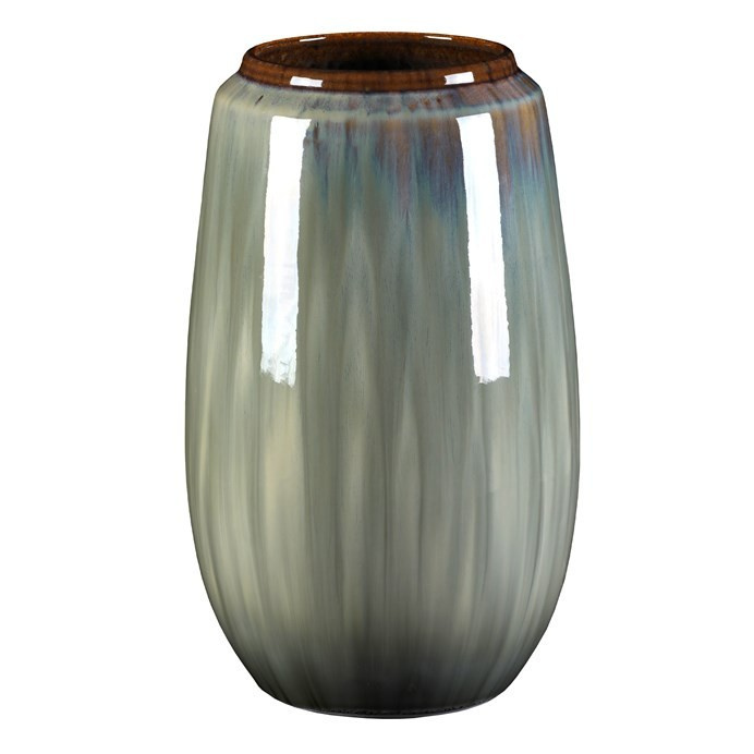 Keramická váza o výšce 31 cm v šedých odstínech se pyšní mírně zaobleným tvarem a jemnými svislými vlnkami v lesklém povrchu. Její neutrální design dokonale podtrhne krásu rostlin i dekorativních přízdob, které v ní vyniknou v celé své kráse.