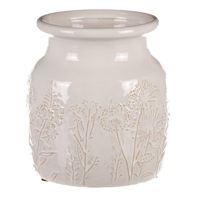 Keramická váza s dekorem lučního kvítí je skvělým prostředkem, který umocní krásu vašich květin, či jiných ozdob v ní umístěných. Obal je zcela nepropustný, a když je třeba, zadržuje vodu a chrání okolní prostředí před vlhkostí. Naopak rostlinám poskytuje lepší podmínky, takže i řezané květiny vydrží delší dobu v dobré kondici. Váš interiér tím obohatíte o vkusný dekorativní prvek, který bude plnit estetickou i praktickou funkci na jedničku.